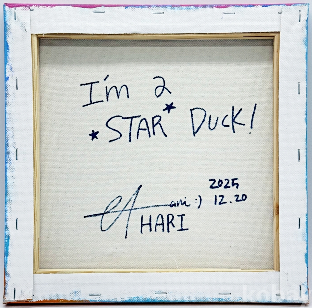 작품 및 작가 소개 | [I'm a STAR duck!] 이 작품은 우리 모두에게 자신만의 무대가 있으며, 누구라도 스스로의 꿈을 마음껏 펼칠 수 있다는 희망적인 메시지를 담고 있습니다. 작가는 무대 위에 선 오리가 자신 있게 날개를 펼친 모습을 통해, 누구든 자신의 꿈을 향해 용기 있게 날개를 펼치기를 바라는 마음을 표현했습니다. [작가노트] “목소리로 전하던 위로, 이제는 캔버스 위에서 노래하다” 연하리 작가는 오랜 시간 '소리'를 통해 자신과 세상을 연결하며 표현해 왔습니다. 어린 시절부터 피아노와 성악에 두각을 나타냈으며, 미국, 이탈리아, 독일에서의 폭넓은 경험을 바탕으로 깊이 있는 감정의 스펙트럼을 쌓아왔습니다. 작가는 어느 시점에 이르러 표현의 영역이 소리에만 국한되지 않음을 깨닫고, 그림이라는 매체를 통해 더 확장된 세계와 세밀한 감정을 담아내기 시작했습니다. 그녀는 과거 목소리로 위로를 전하던 방식에서 나아가, 이제는 캔버스 위에서 마치 노래하듯 따뜻한 감성을 나누고자 합니다.