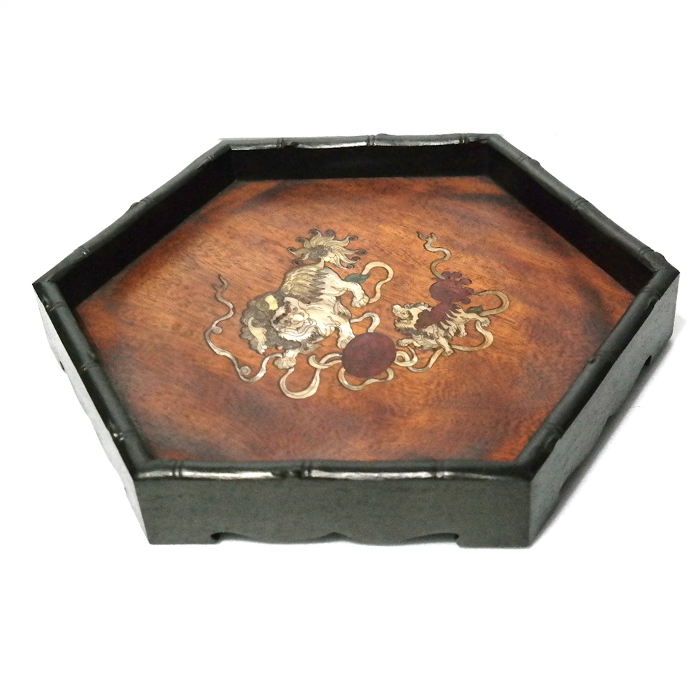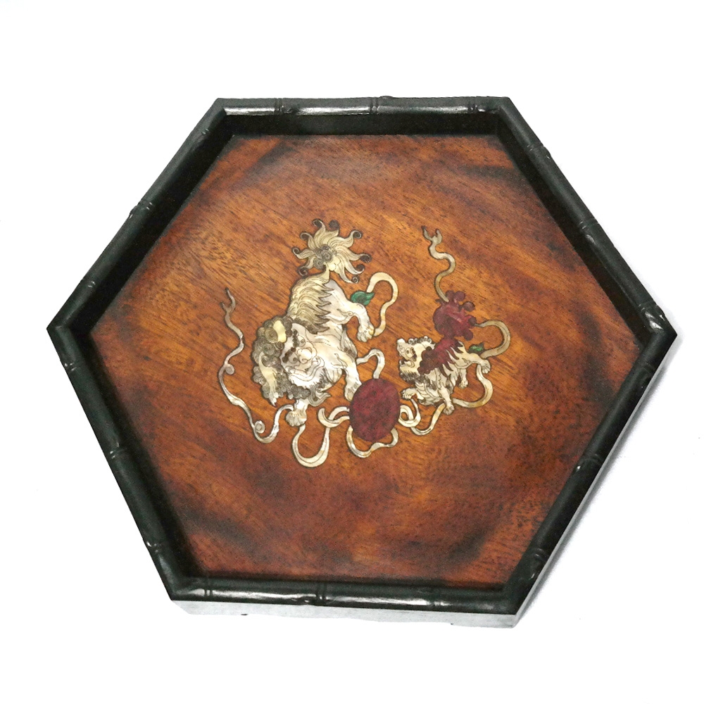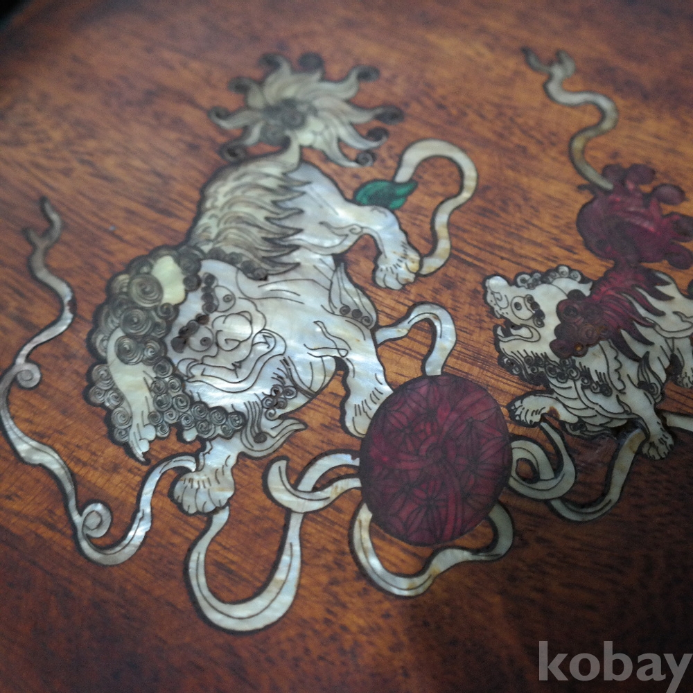 나무몸체 위에 자개가 들어가있는 골동품재현작 쟁반1점 입니다