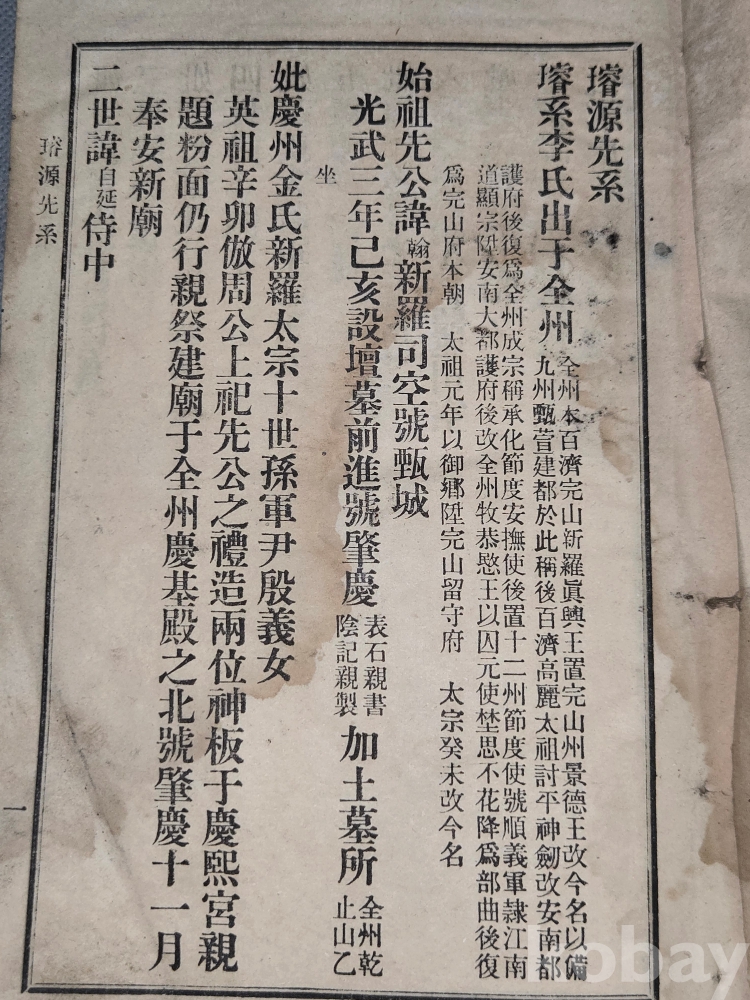1907년(융희원년) 조선왕실 계보 선원선계(璿源先系)