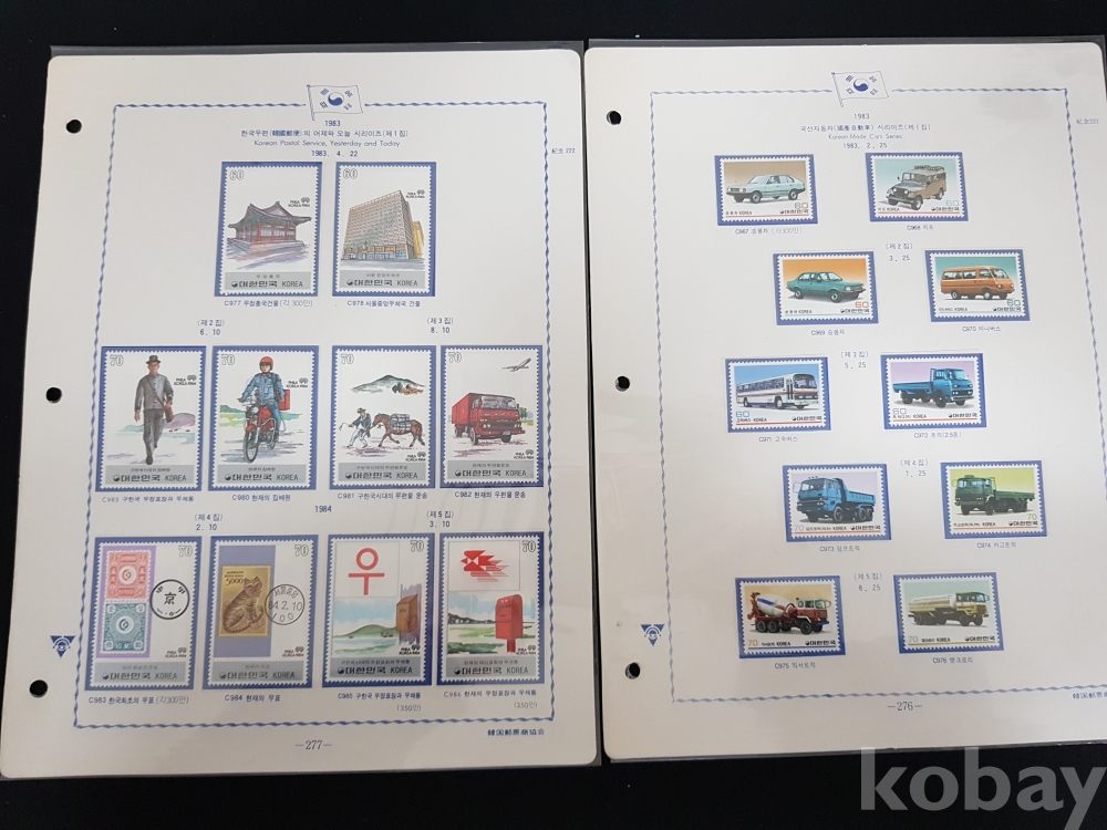 - 1980년대 국산자동차, 민족기록화, 한국우편의어제와오늘 시리즈 모음 / 앨범해체분