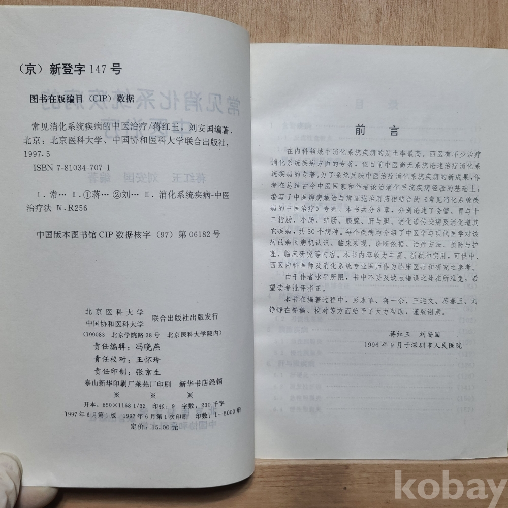 중국어판 한의학서적 상견소화계통질병 적중의치료