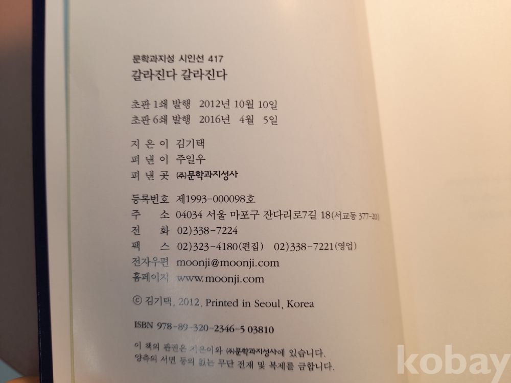 문락과 지성 시인선 * 김기택 시집 갈라진다 갈라진다