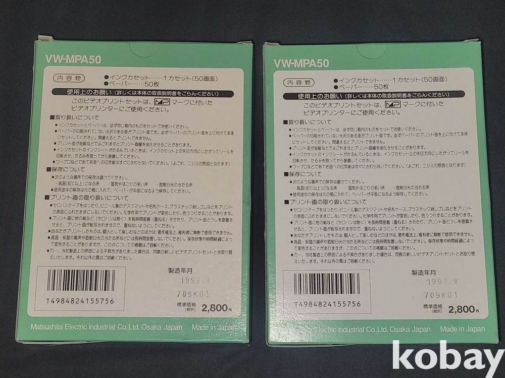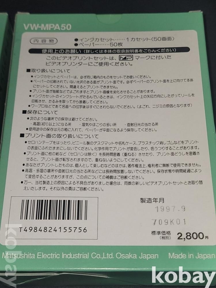 빈티지 미개봉 일본 파나소닉 비디오 프린트 세트 VW-MPA50 2종과 옛날 노래 미니 8cm CD 3종 등 일괄입니다.