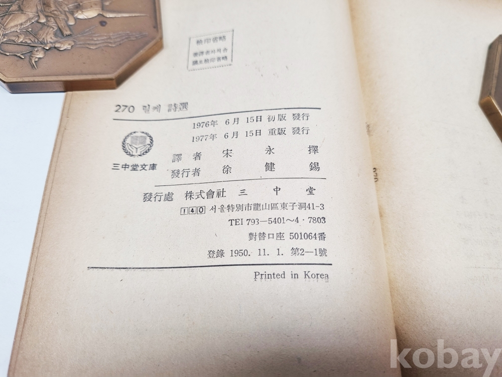 [묻지마 천원 경매] YBK15 삼중당문고 릴케 시선 (문고270) 1977