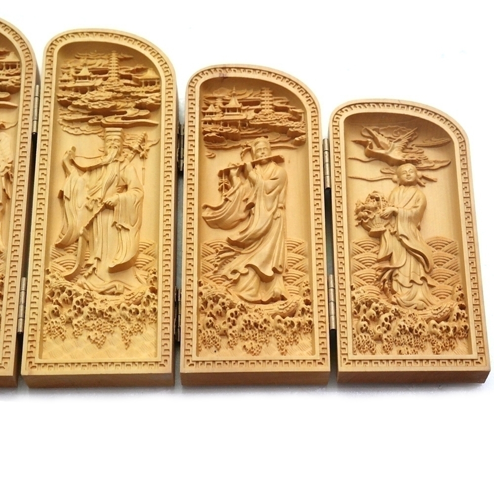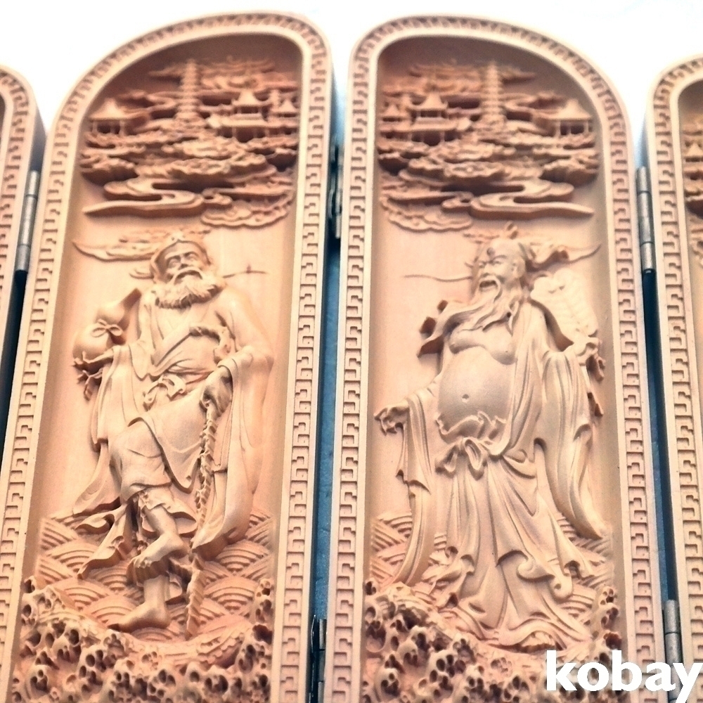 나무를 조각하여 만들어진 8폭 석가모니 관세음보살 불감 입니다.