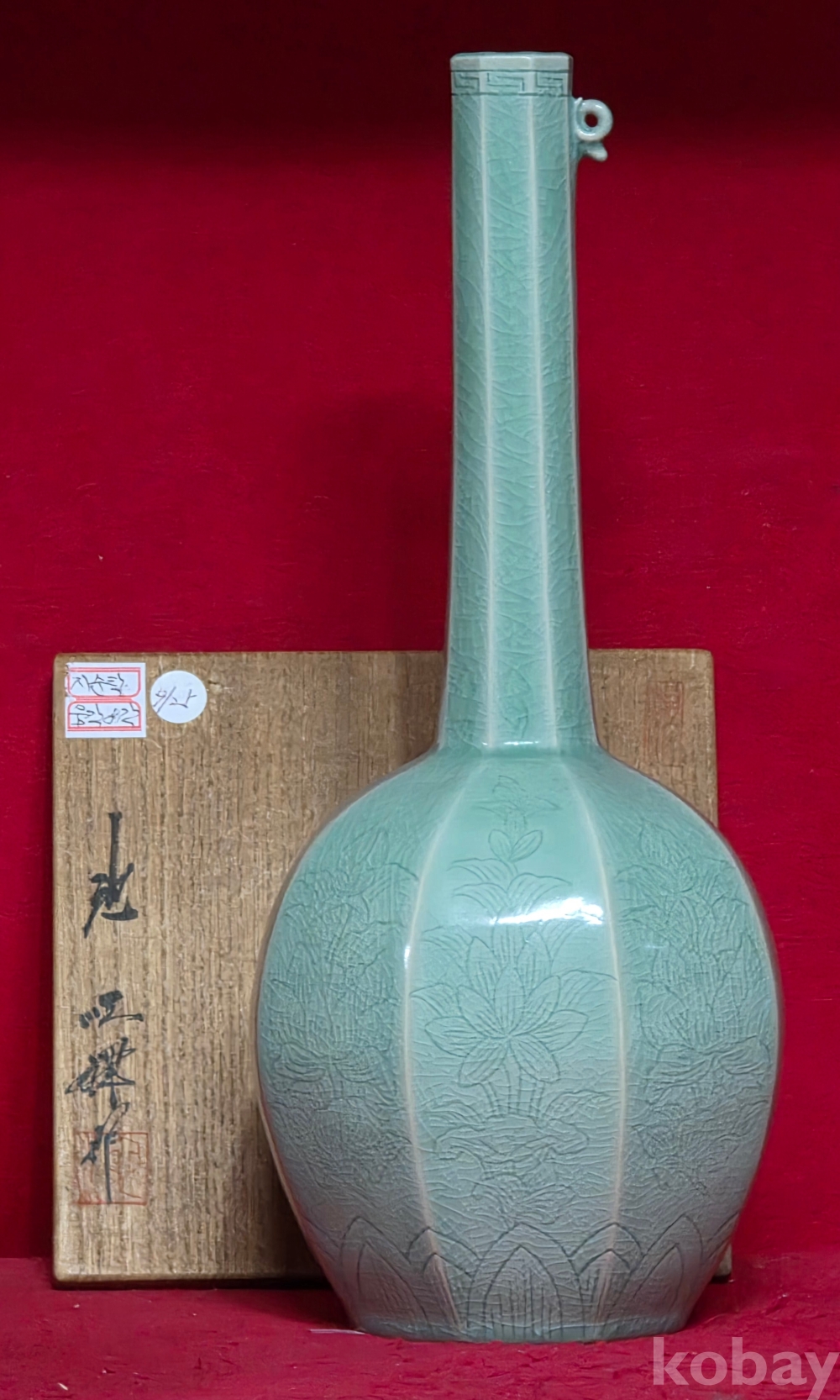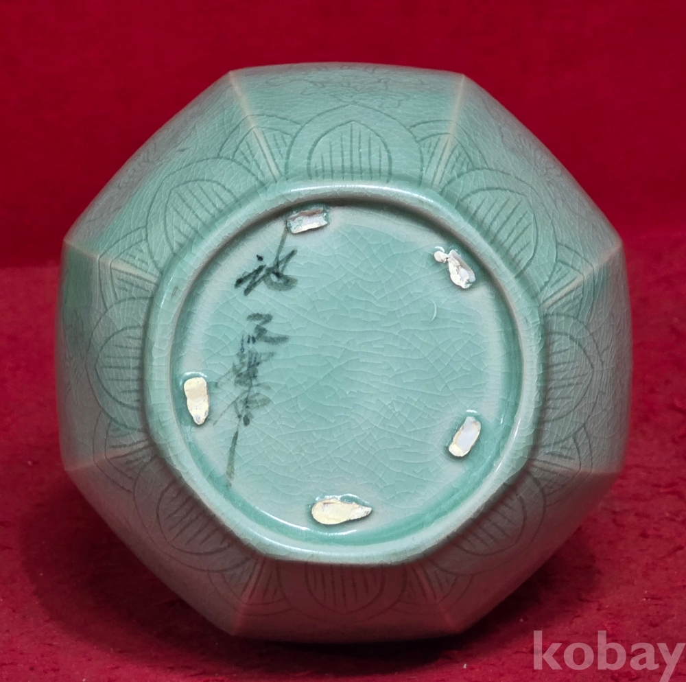 인간문화재 도암 지순탁 선생님의 흑백상감 인화문 주병 입니다