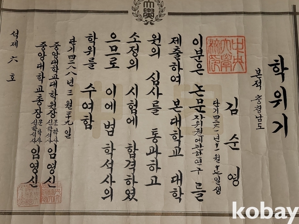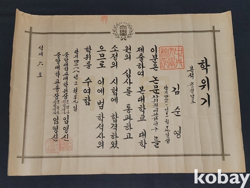 빈티지 세월 감이 느껴지는 희귀한 1955년 중앙대학교 학위기 증서입니다.