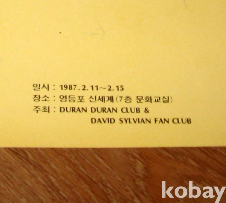 87년 듀란듀란 , 재팬 팬클럽 전시회 전단지 1장 ( 87년 2월 영등포 신세계 )