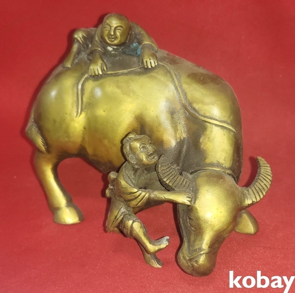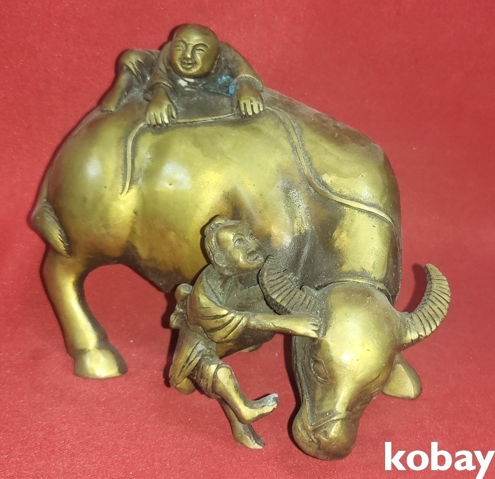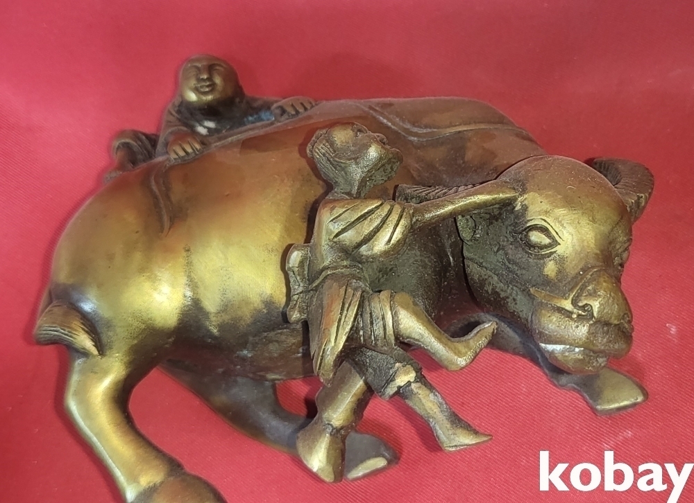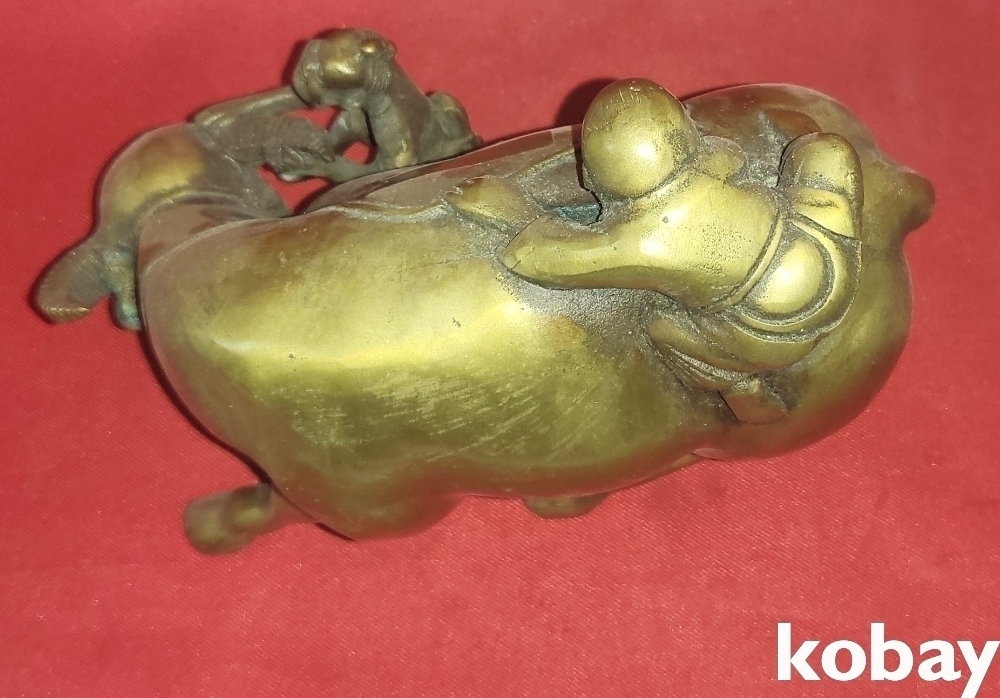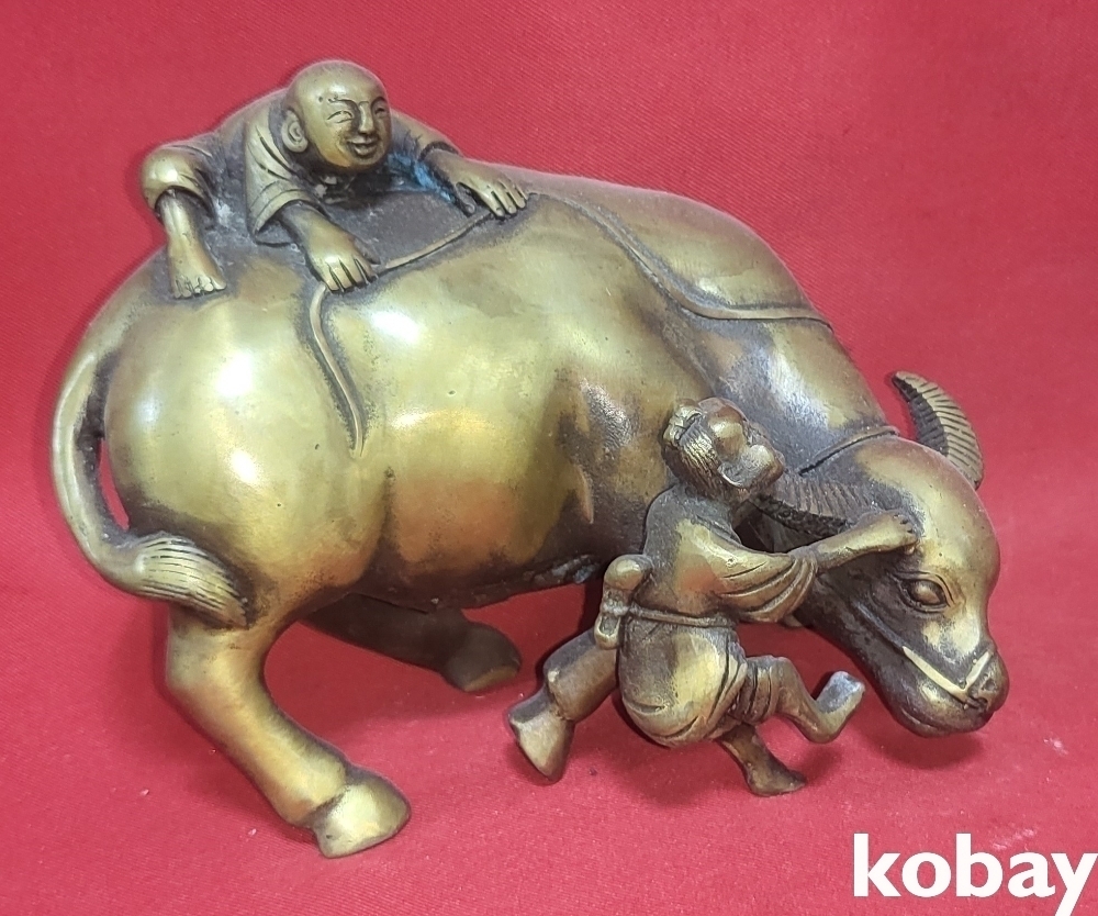 두명의 동자가 황소를 타고 노니는 문양입니다,