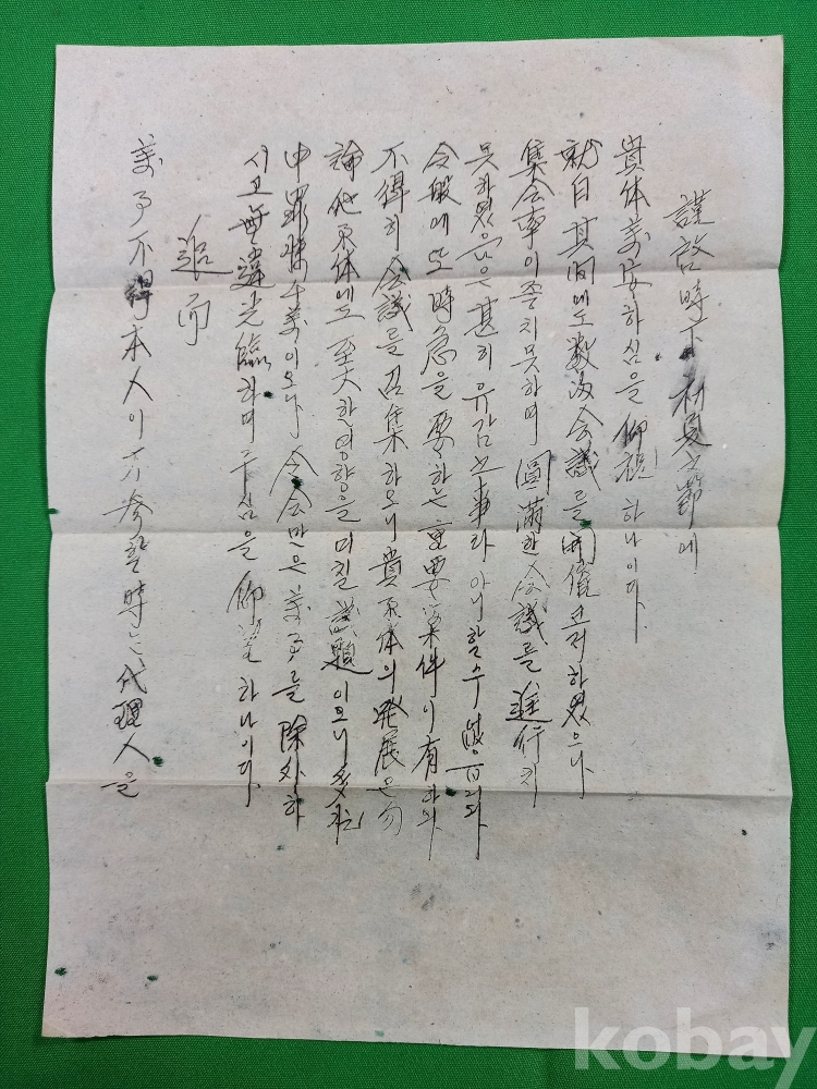 이 통지문은 격식을 갖춘 안부 인사로 시작하여, 특정 모임이나 사건에 대한 참여를 요청하거나 사정을 설명하는 내용을 담고 있습니다.