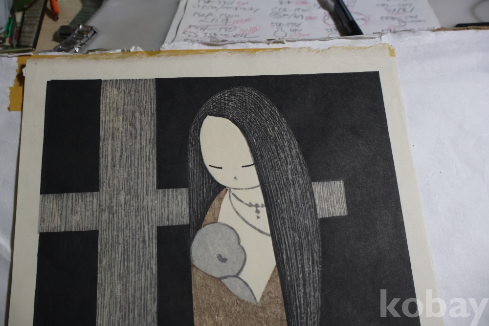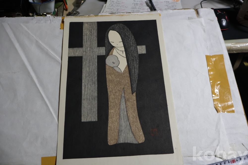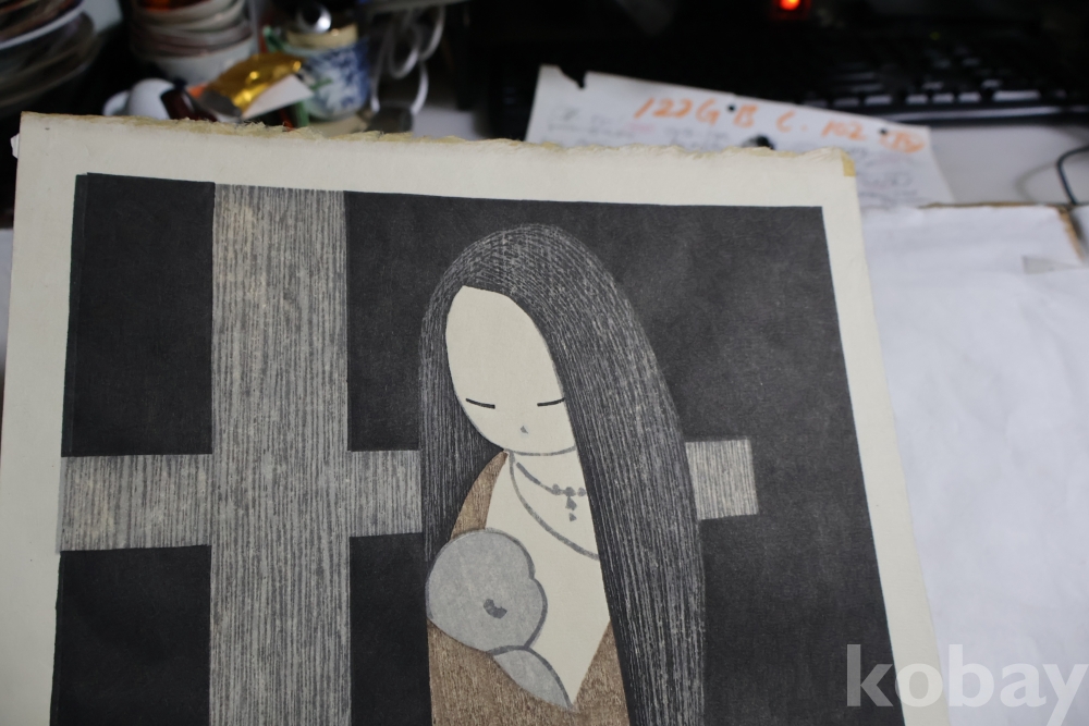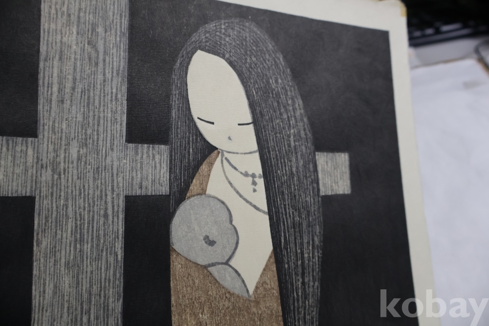 일본 현대 목판화 대가 가오루의 명화 임니다 우아함과 여운을 가진 명화 임니다 세계적인 인기 화가 임니다 Woodblock Print Madonna & Child by Kawano Kaoru (1916-1965)
