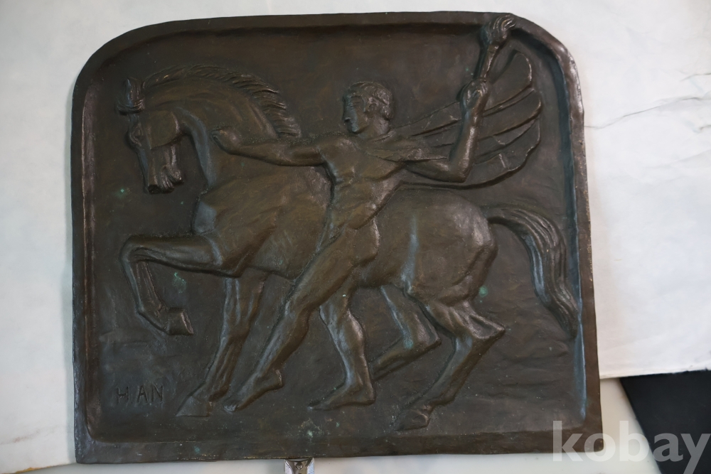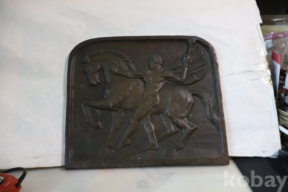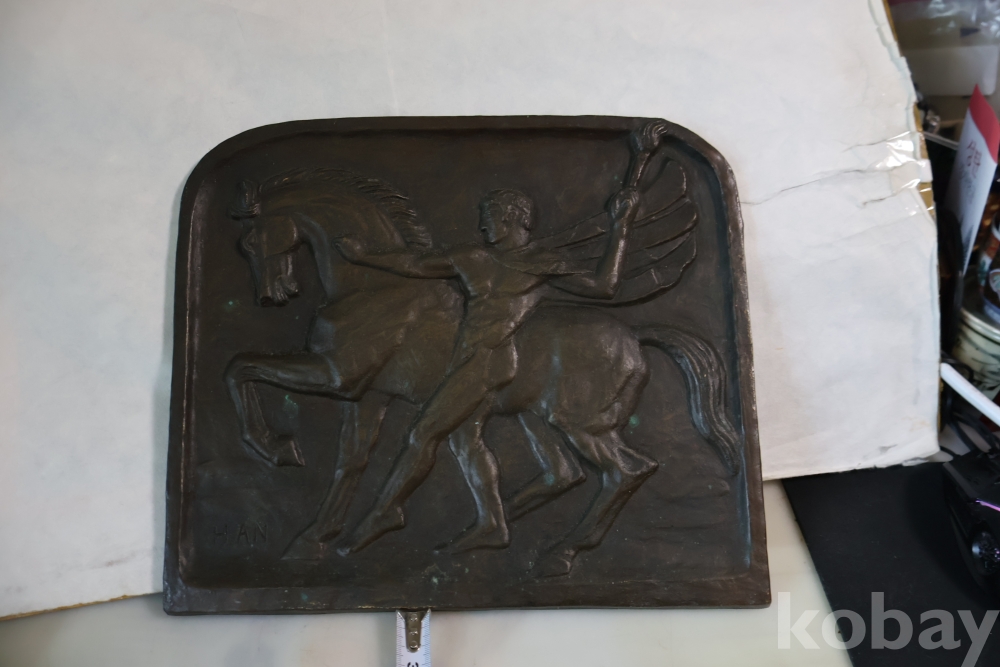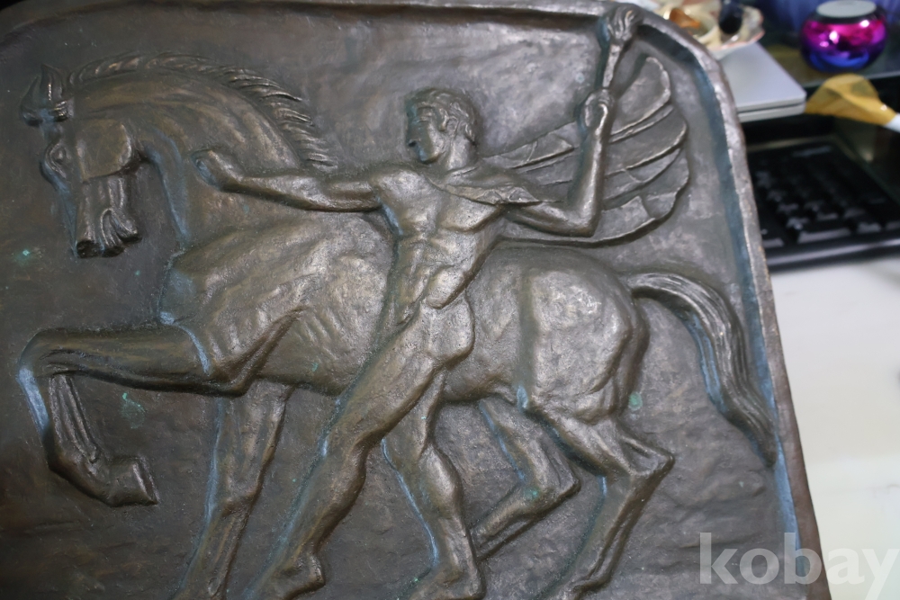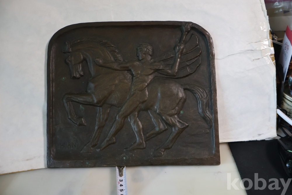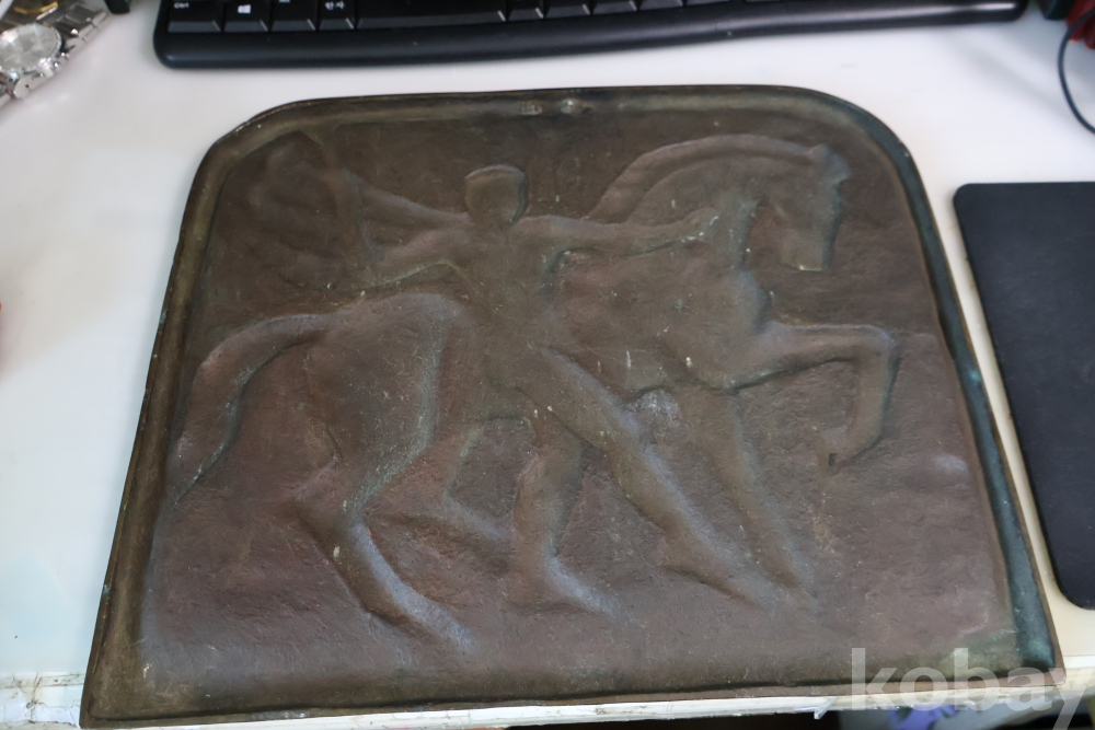 멋진 말과 전사의 모습을 가진 청동 판넬?임니다 묵직하고 다이나믹한 명품 임니다 무게감이 대단한 명작