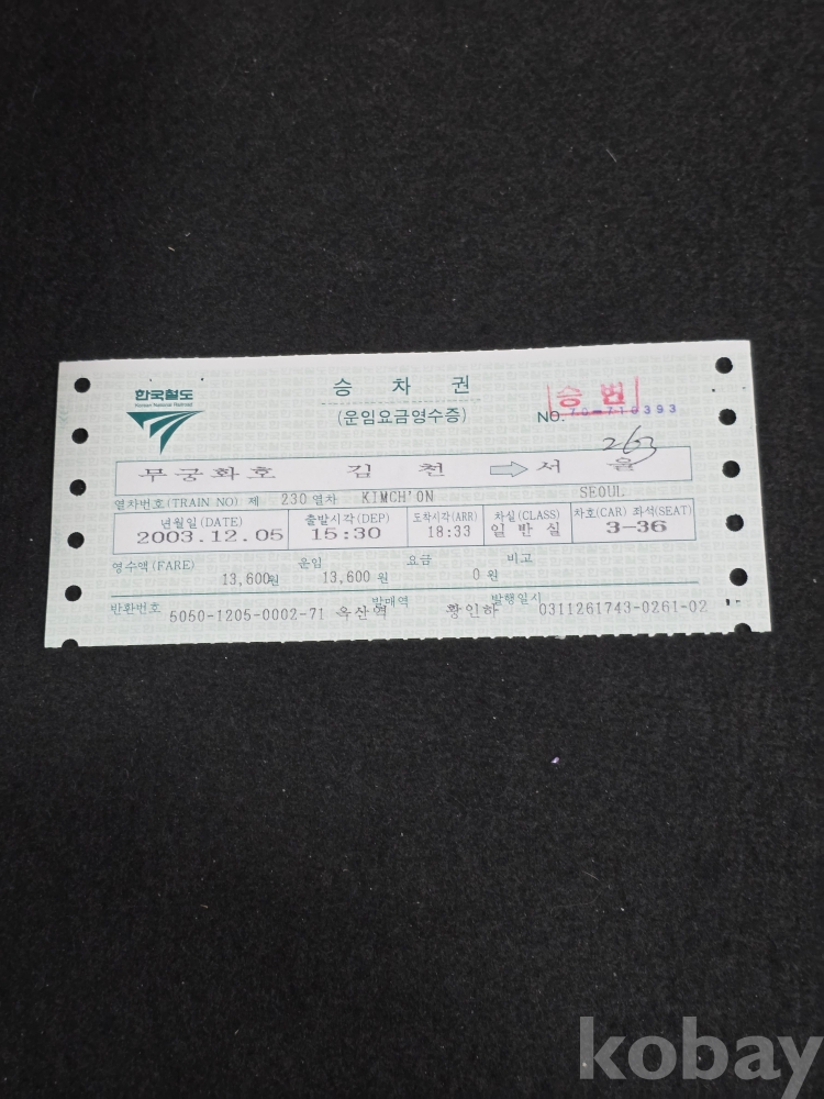 (((철도자료/지하철자료))) 2003년 한국철도 승차권 (무궁화호) (김천-서울) (승변)