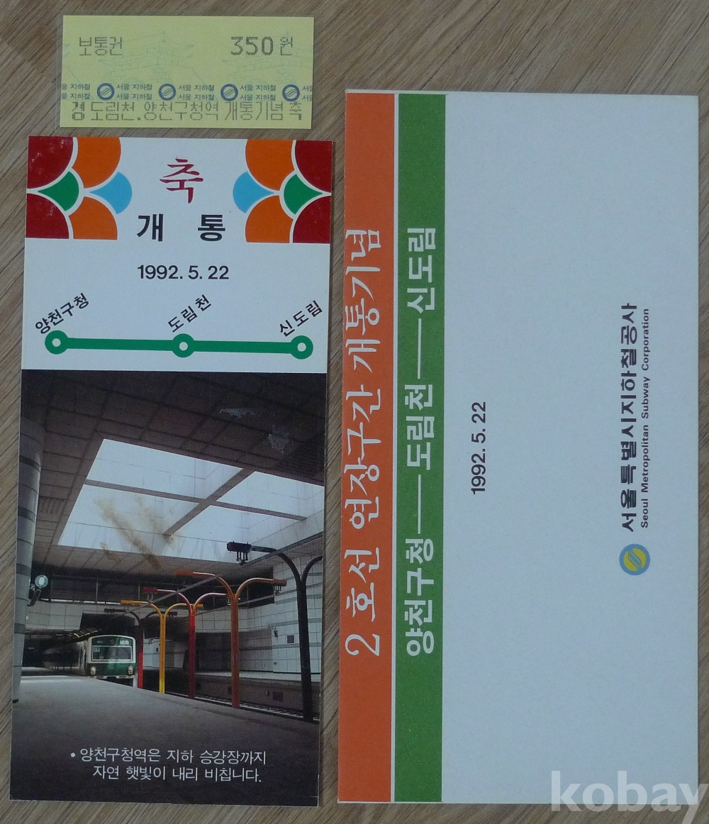 1992년 지하철 2호선 연장 구간 개통 기념 승차권