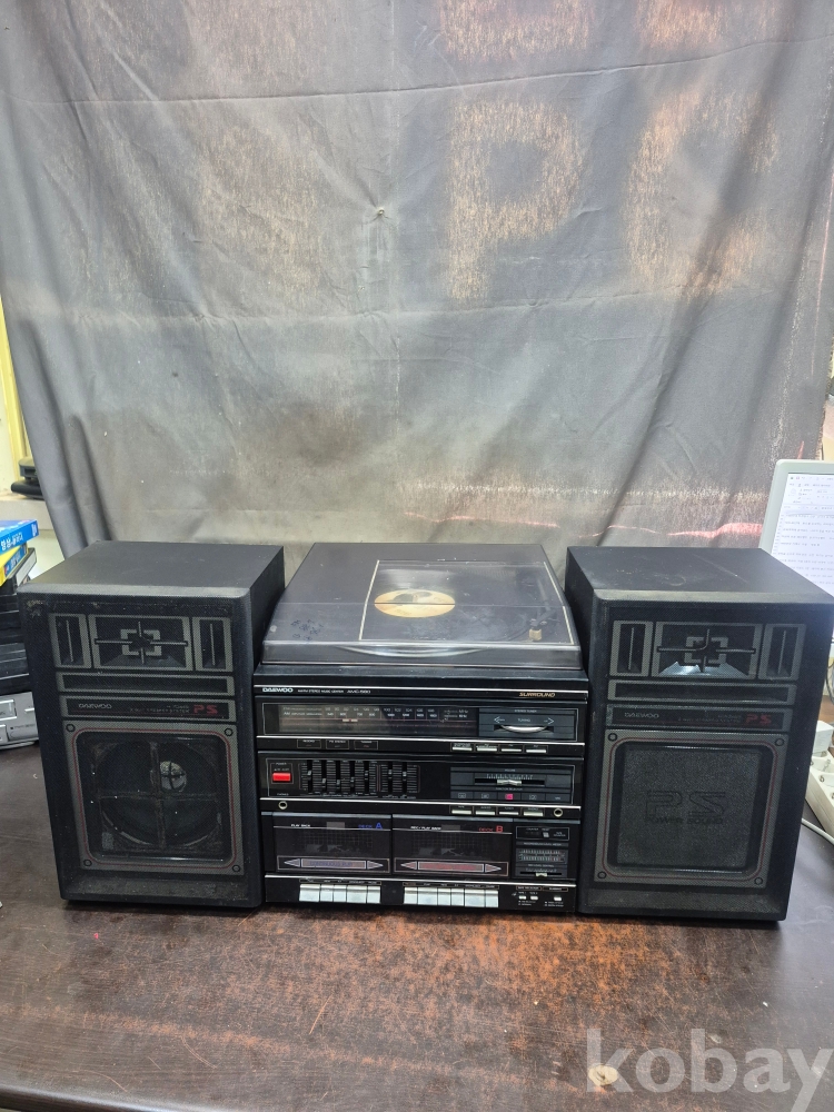 대우 AM /FM 라디오 카세트 턴테이블 풀세트 모델 AMC-580 전기능 정상작동 34*34*33