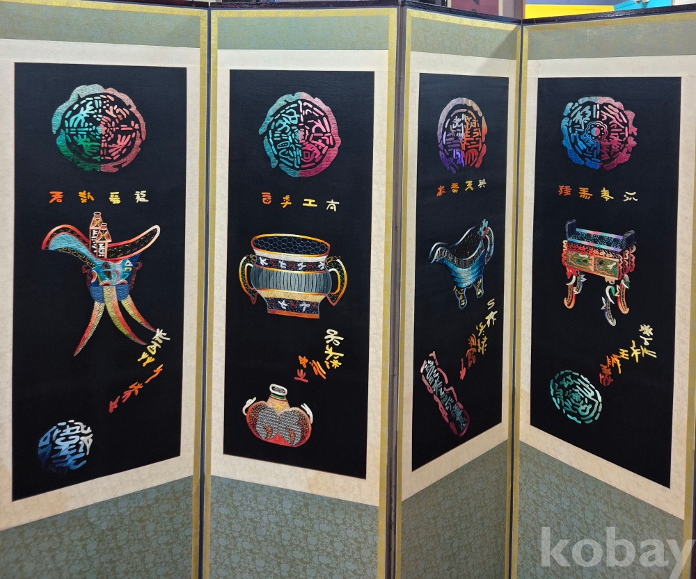 제법 오래된 두껍고 색채감 좋게 잘 놓아진 고급스러운 8폭 수병풍'이오니 이미지 등 두루 잘