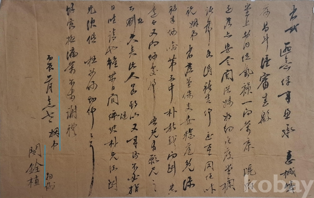 <간찰> 민전식(閔銓植)의 친필 간찰
