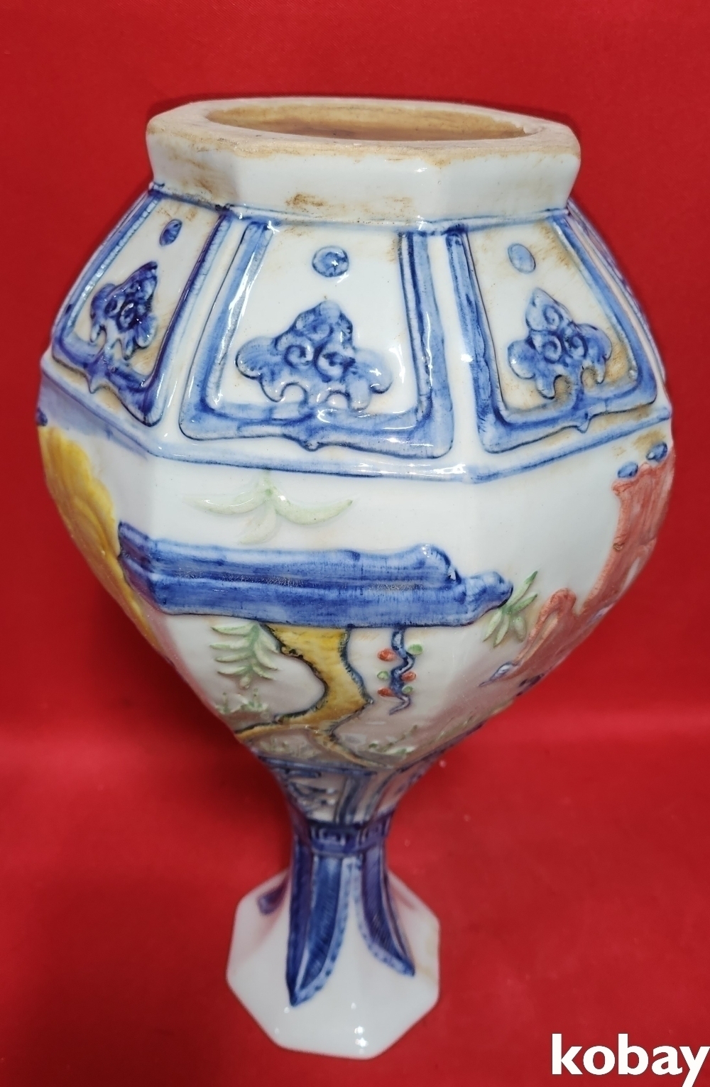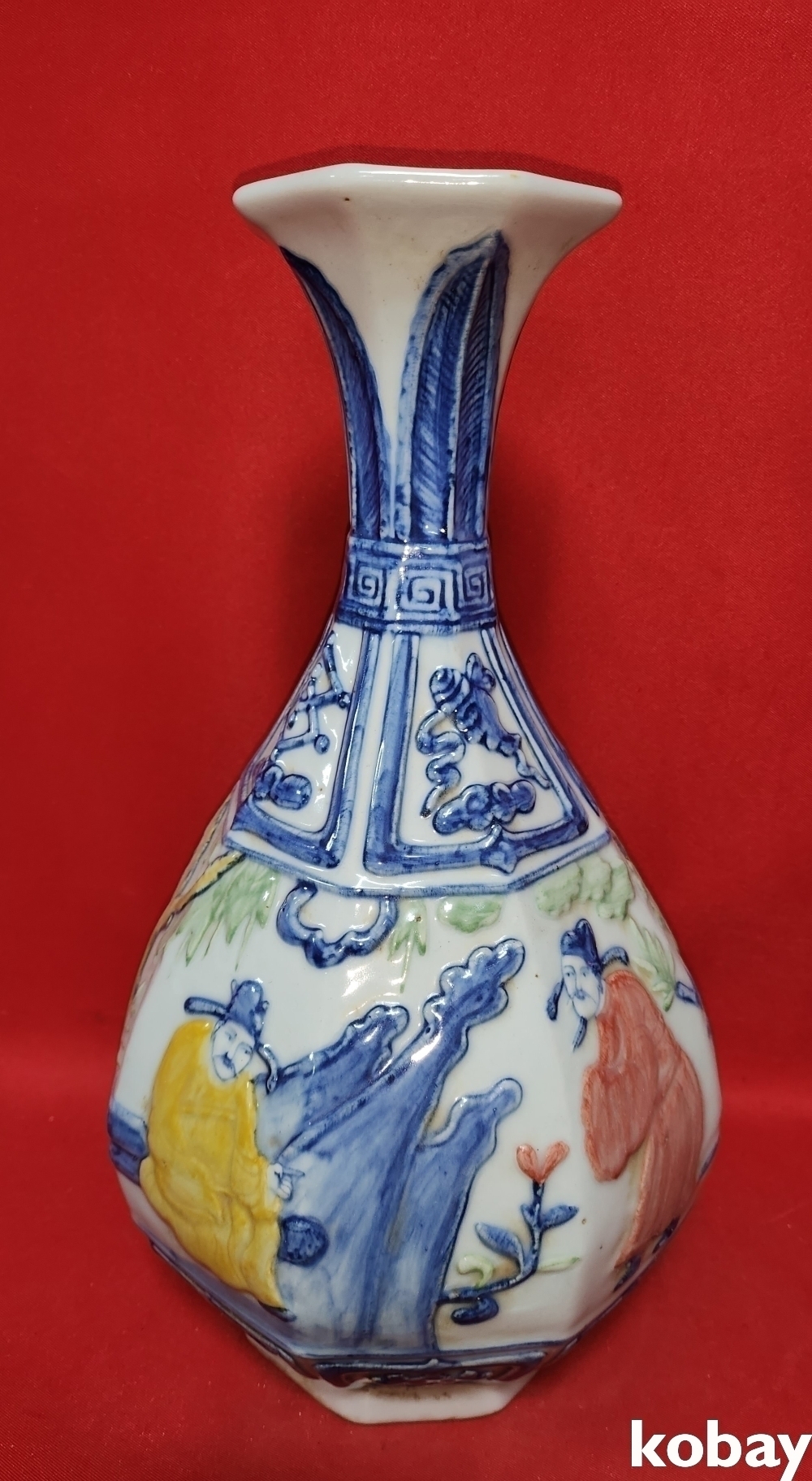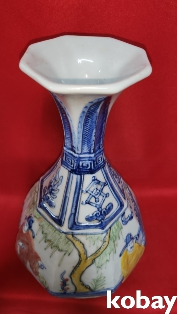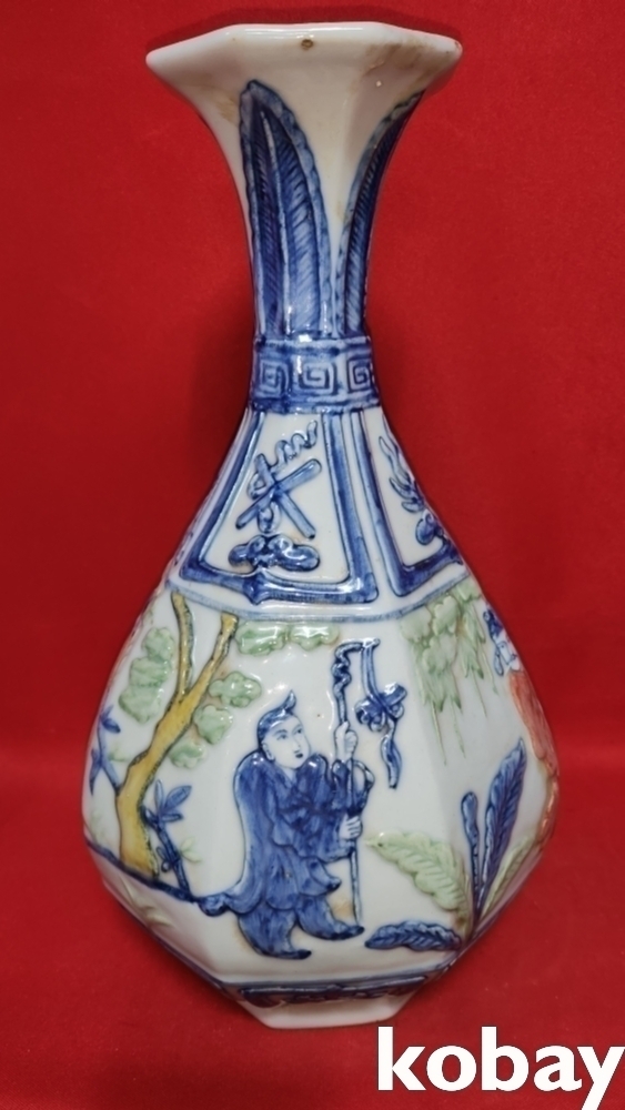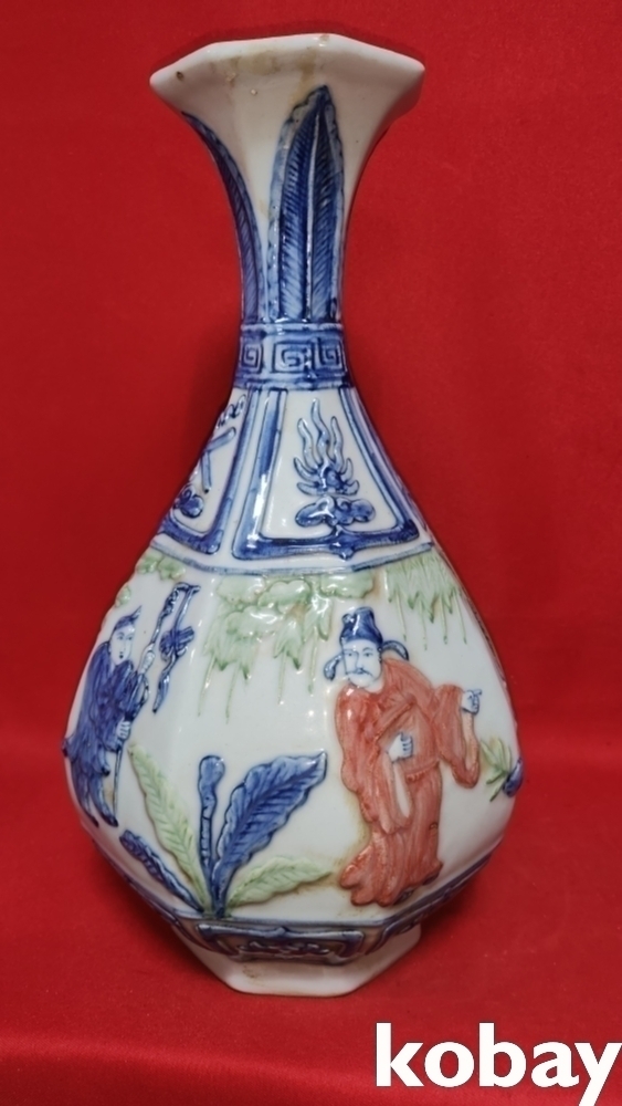 분채 송화 인물문양 8각병입니다,,