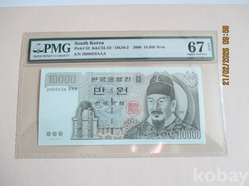 만원2번데초판 빠른번호 가가가 2000026번 26번째지폐 귀함