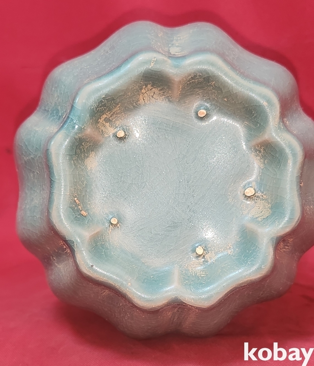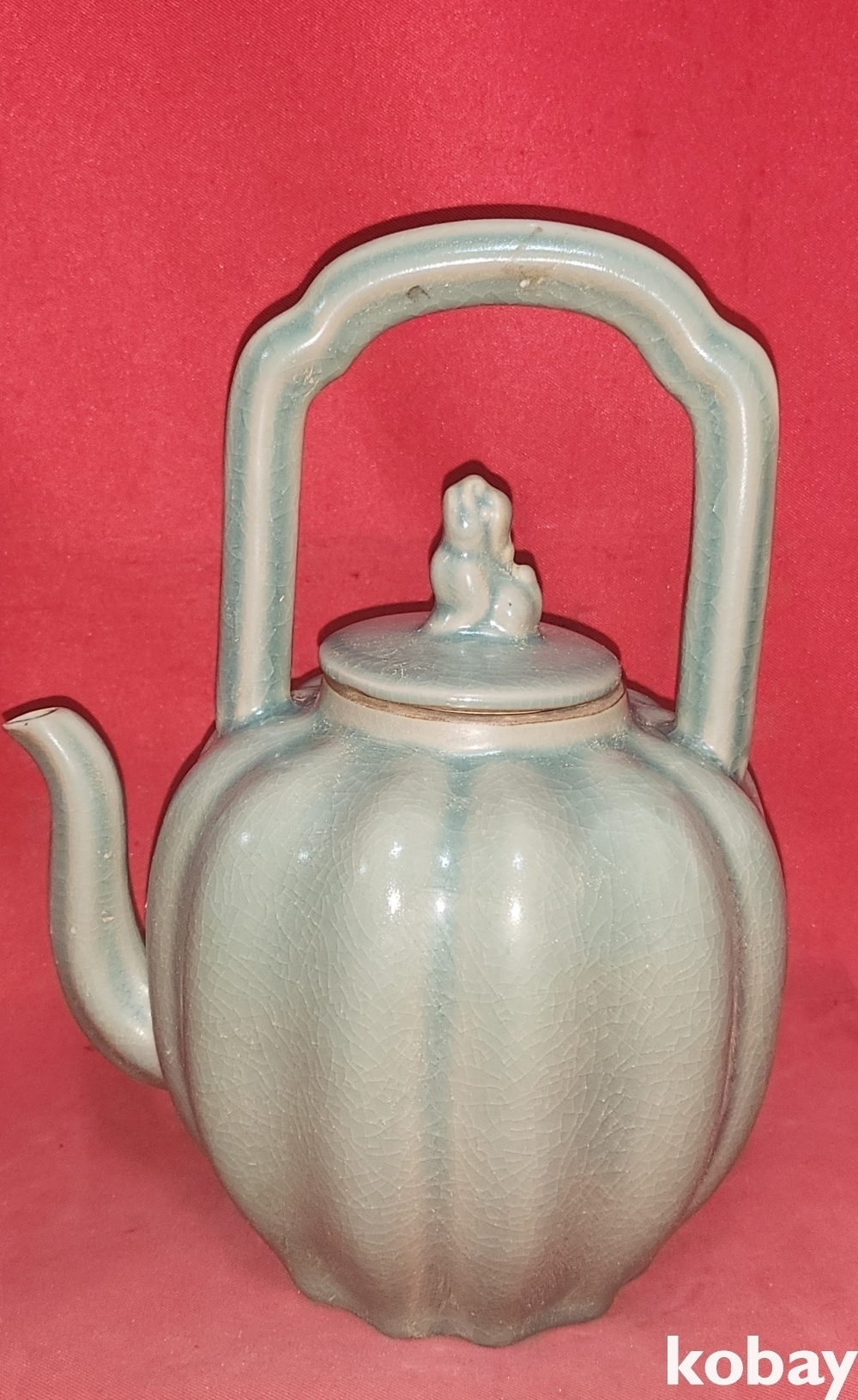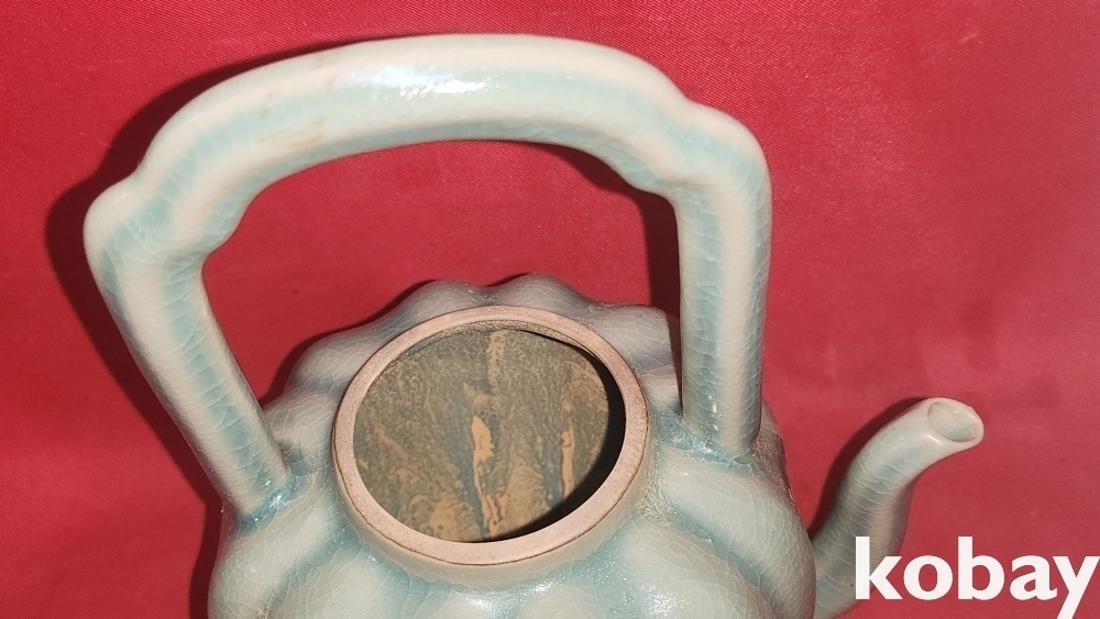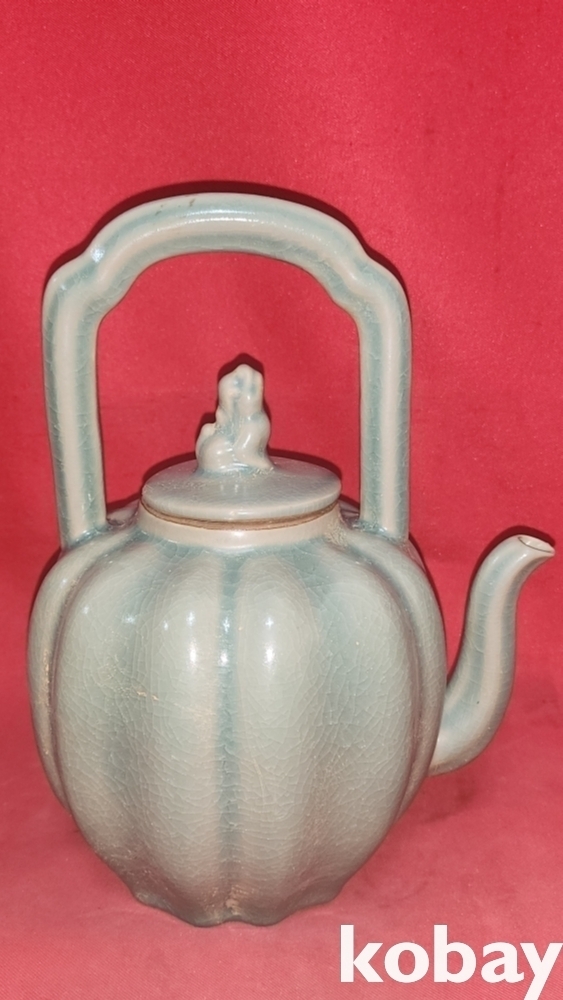 비색청자 ( 翡色 靑磁) 과일형(果形) 골(谷) 문양 주전자입니다,