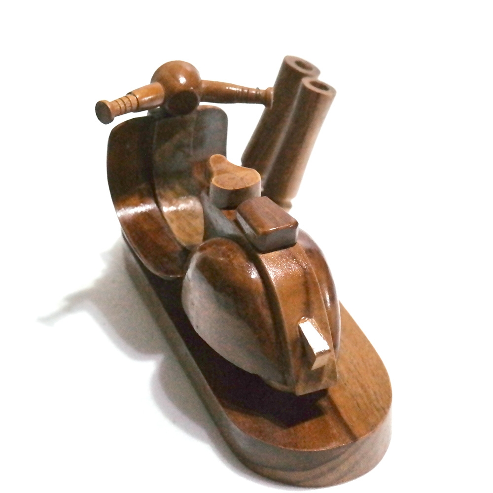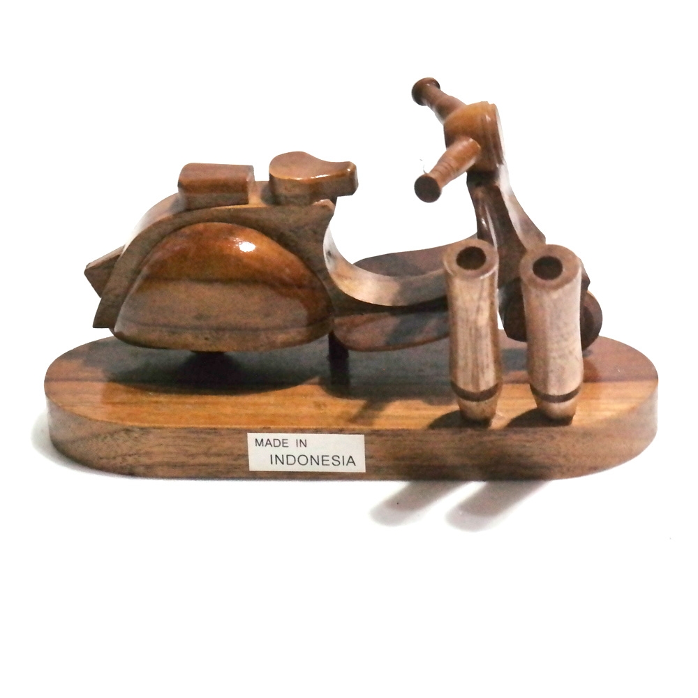 인도네시아에서 나무로 만들어진 스쿠터 모양의 펜꽂이 입니다