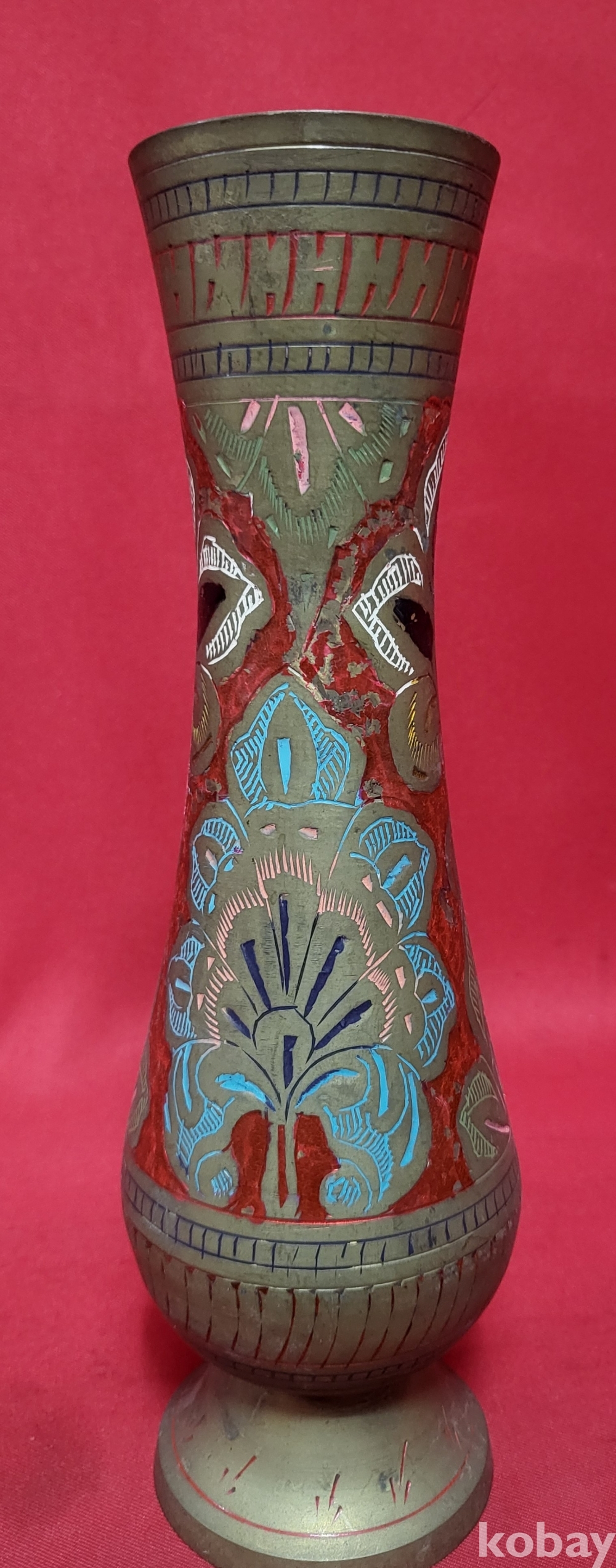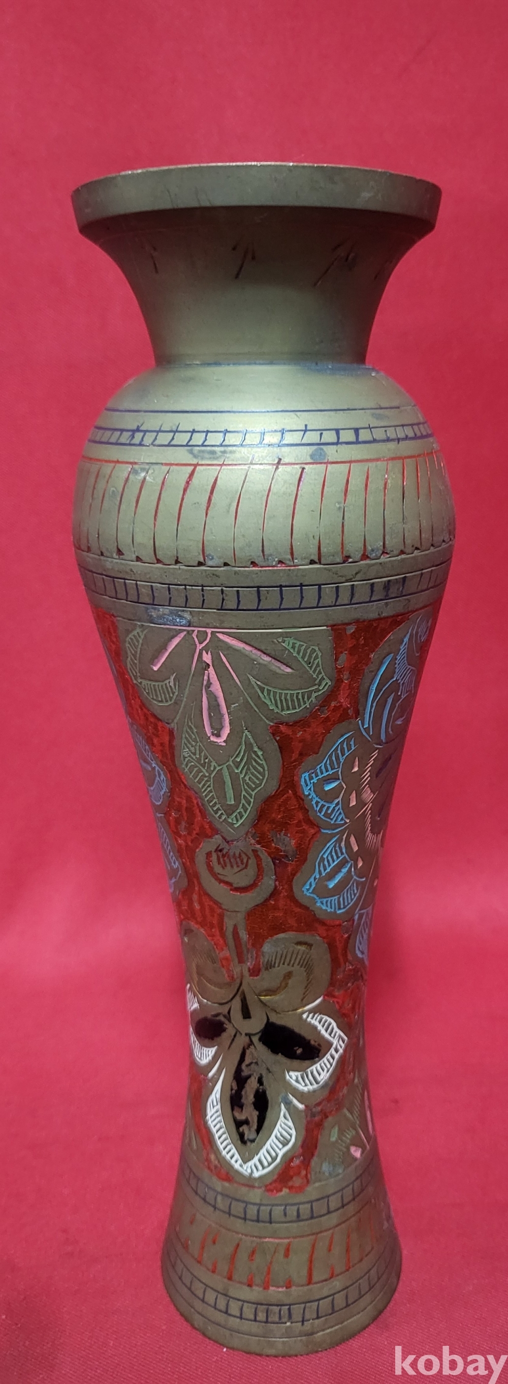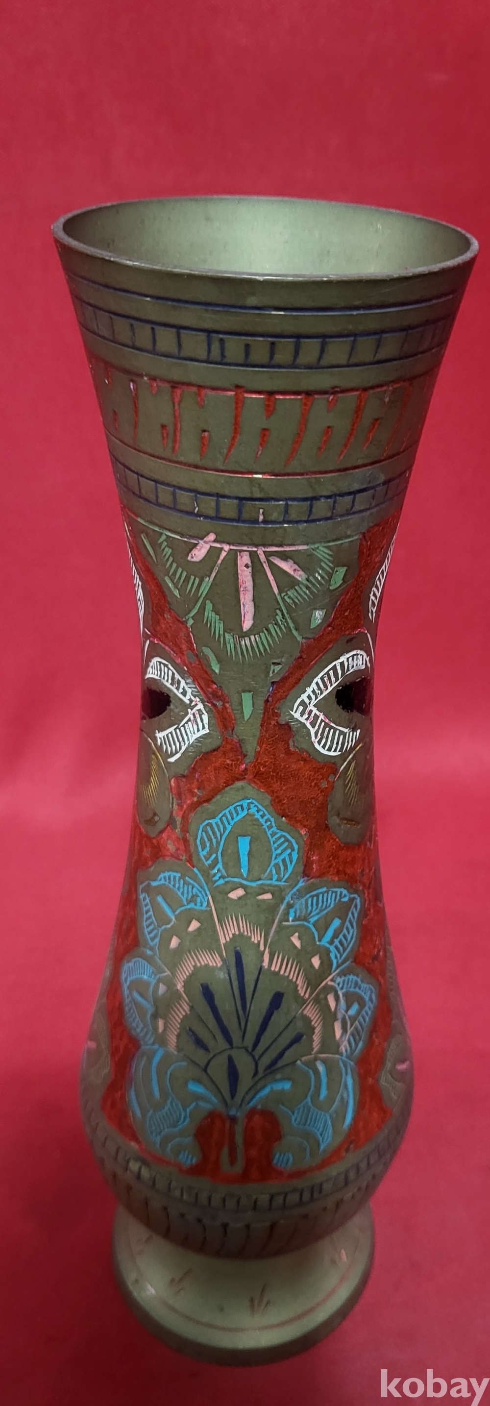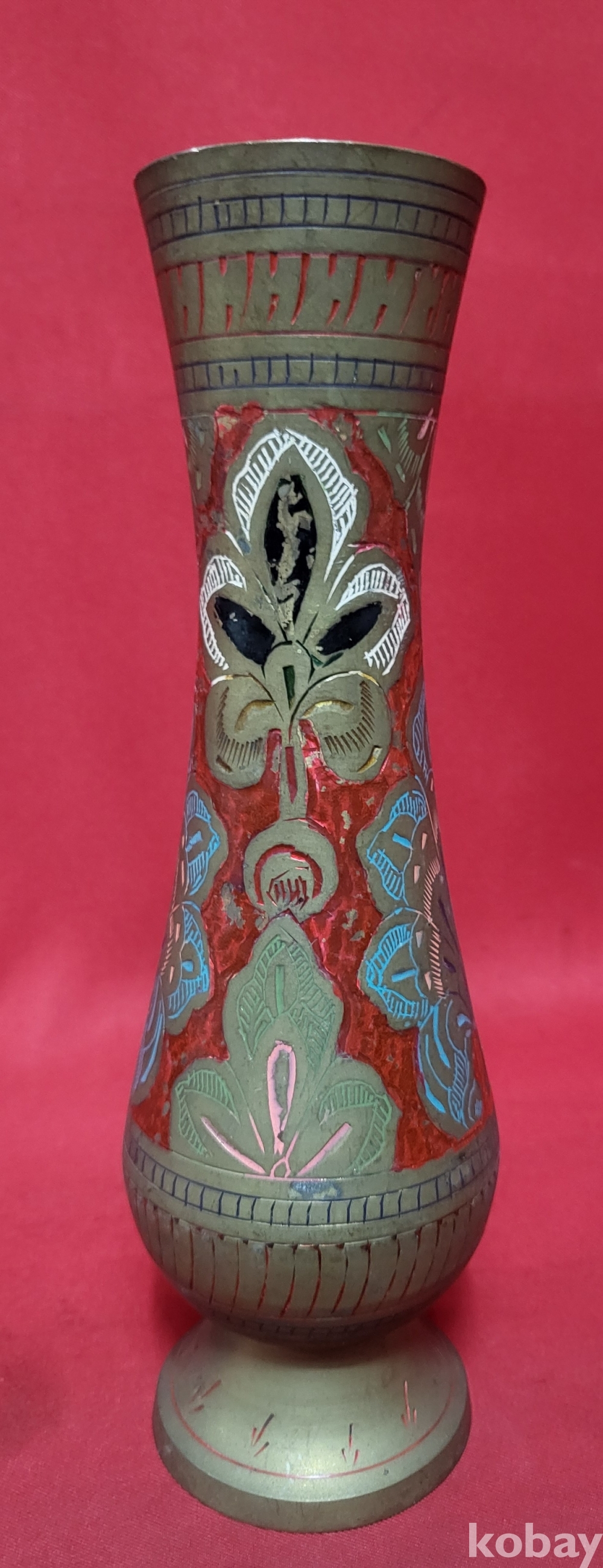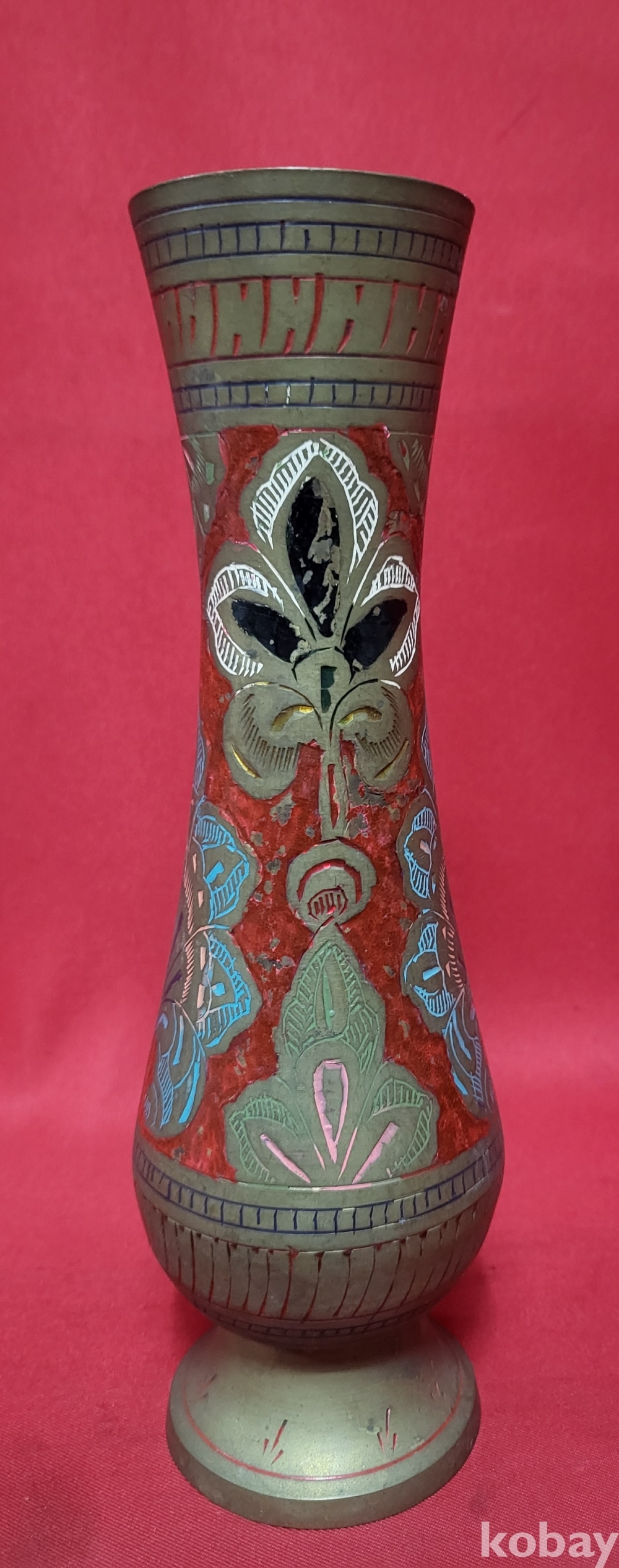 동태범랑 ( 銅胎畵珐琅) 나무잎(葉)문양 화병입니다,