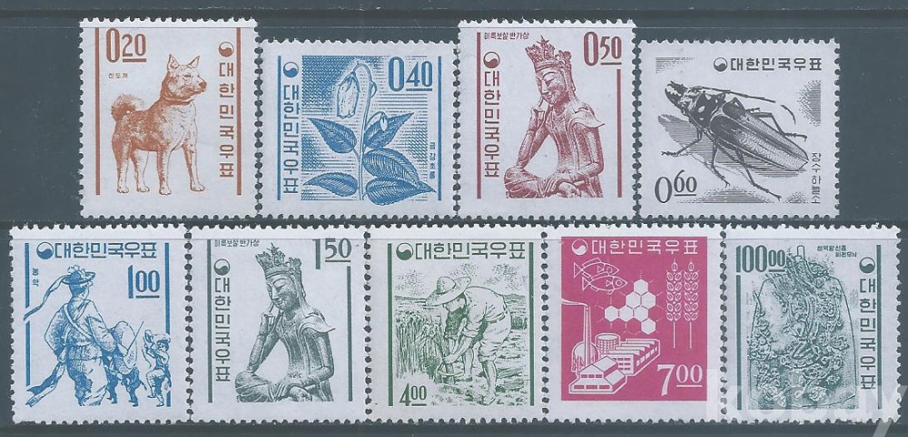 (한국우표-30)1964년제1차국산백지보통우표9종(미사용제)-MNH, F~VF
