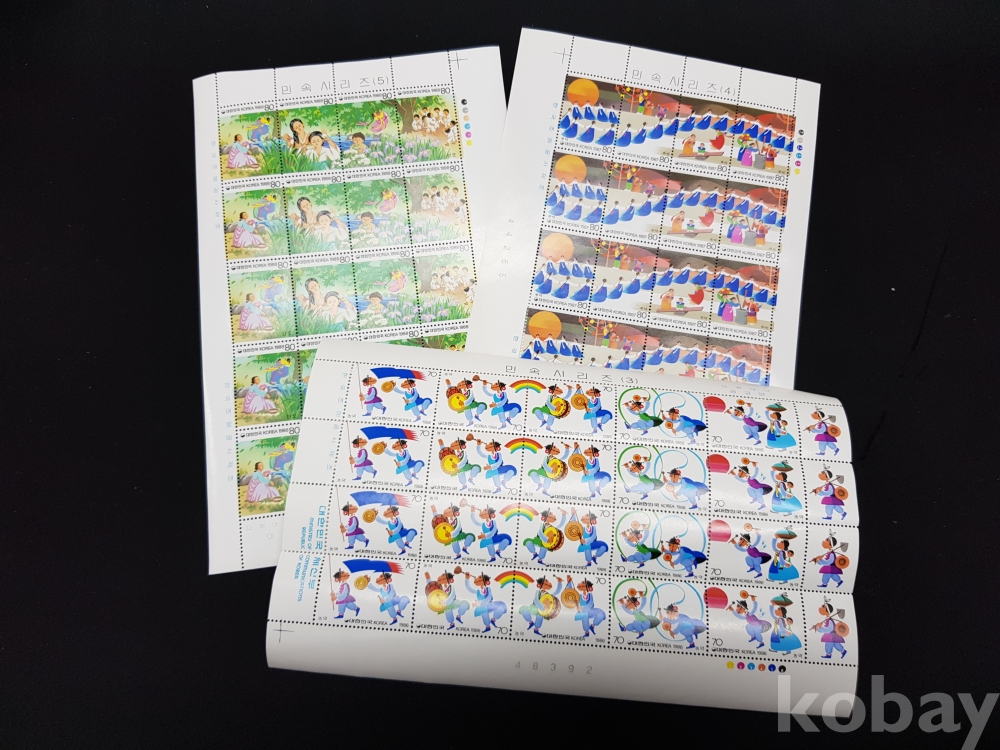 - 미사용 1985년 민속시리즈 - 제 3,4,5집 전지 3종 모음