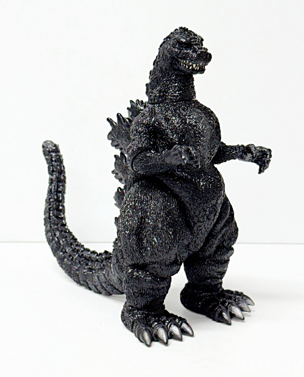 상품설명 | 1990년대 출시된 빈티지 '고질라 피규어'이다. 묵직한 조형과 은색 발톱 도색이 특징이며 보존 상태가 양호한 편이며, 일본 반다이사의 금형을 기반으로 한국에서 생산된 국산 버전이다. | ||