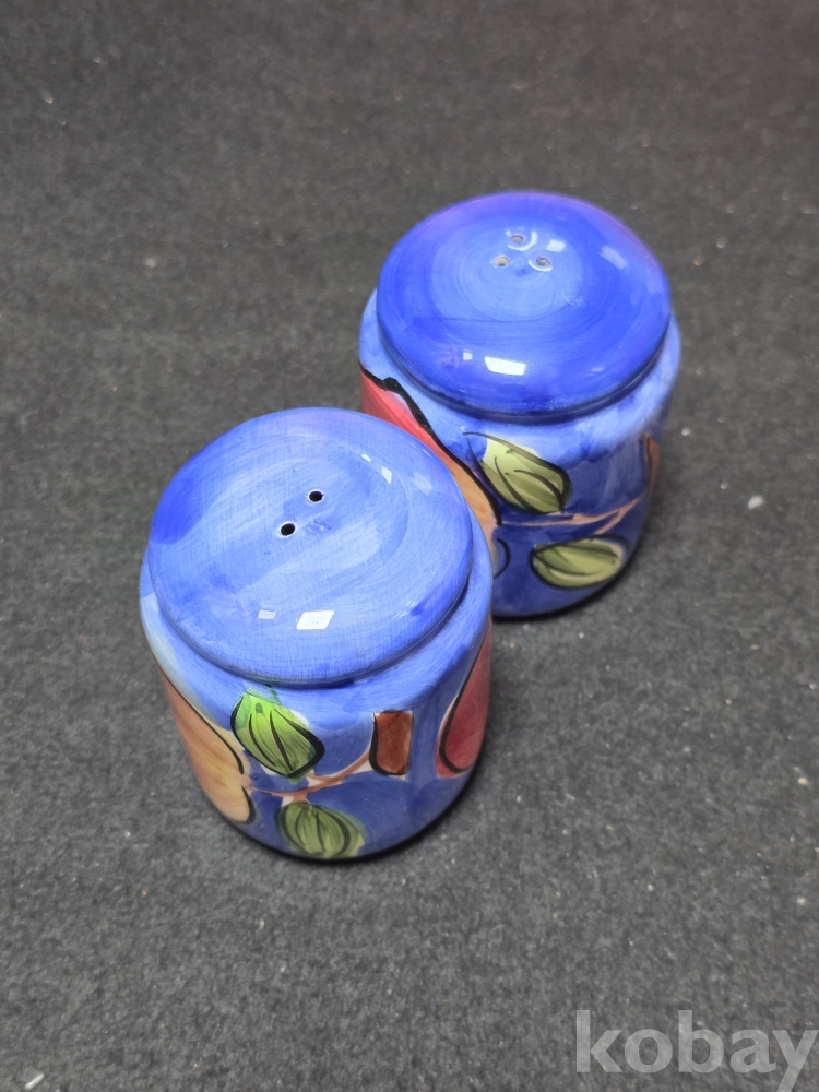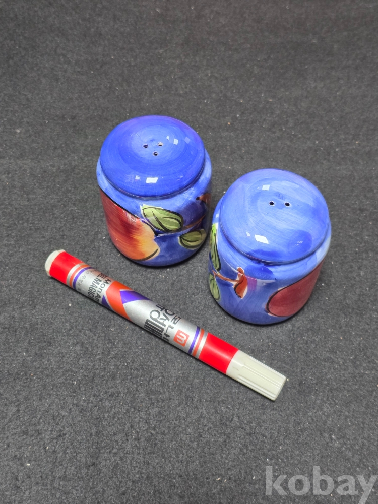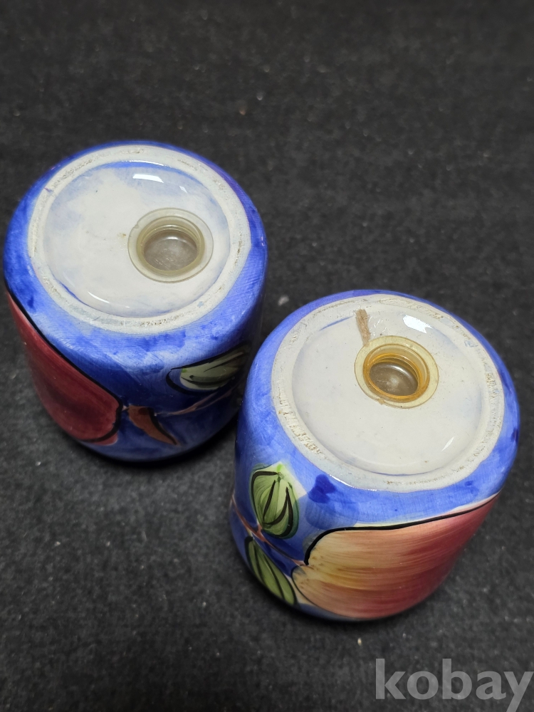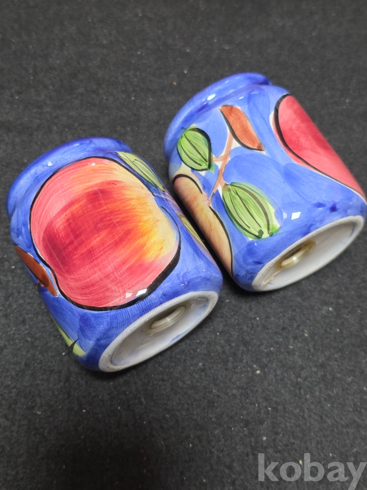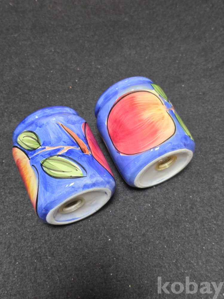 (((인테리어소품))) 오래전 사과그림담긴 도자기 후추통 (양념통) 한쌍세월을 지닌 물품입니다