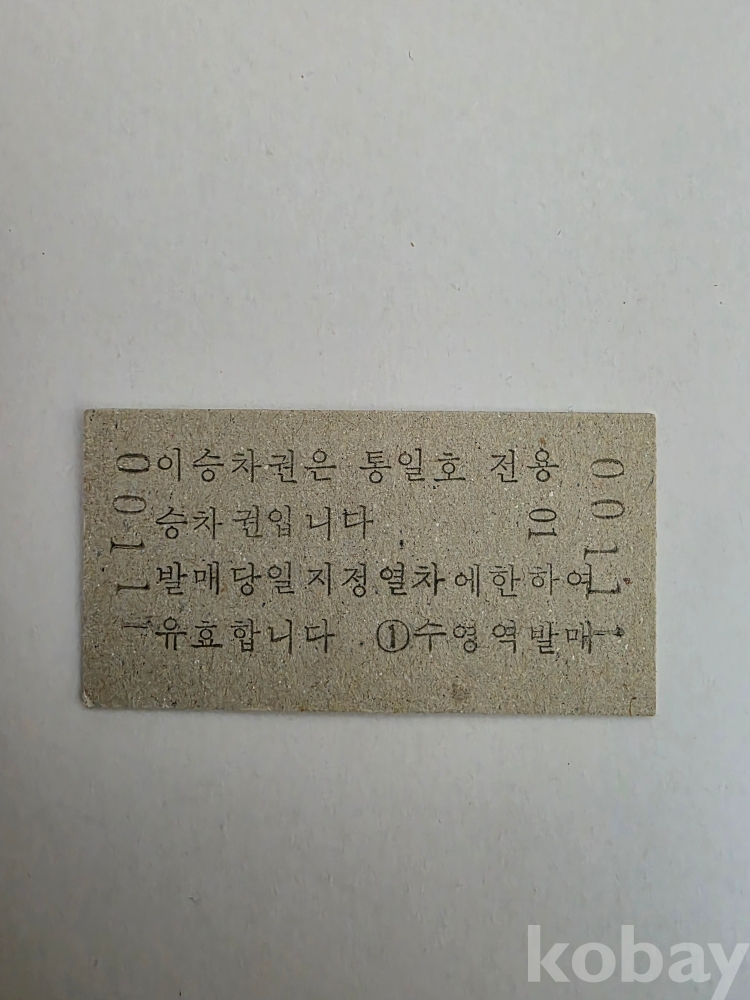 통일호 에드몬슨 승차권입니다