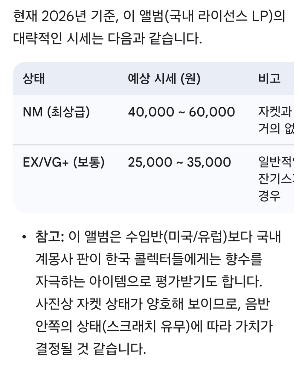 NM : 개봉했으나 미사용급, 스크래치 없음 발매정보 초반 가사지여부