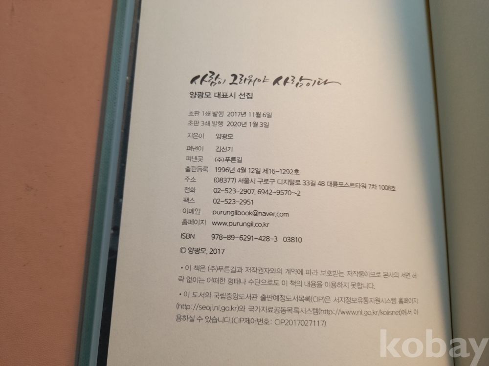 양광모 대표시 선집 사람이 그리워야 사람이다
