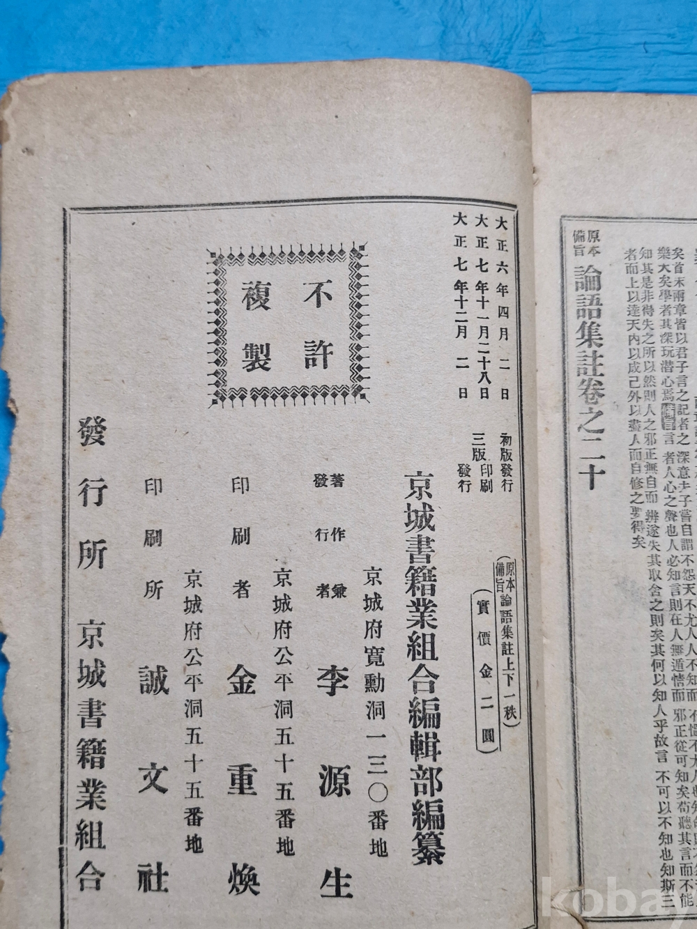 일제시대인 1918년 경성에서 발행한 고서 (논어집주)2권 셋트 입니다