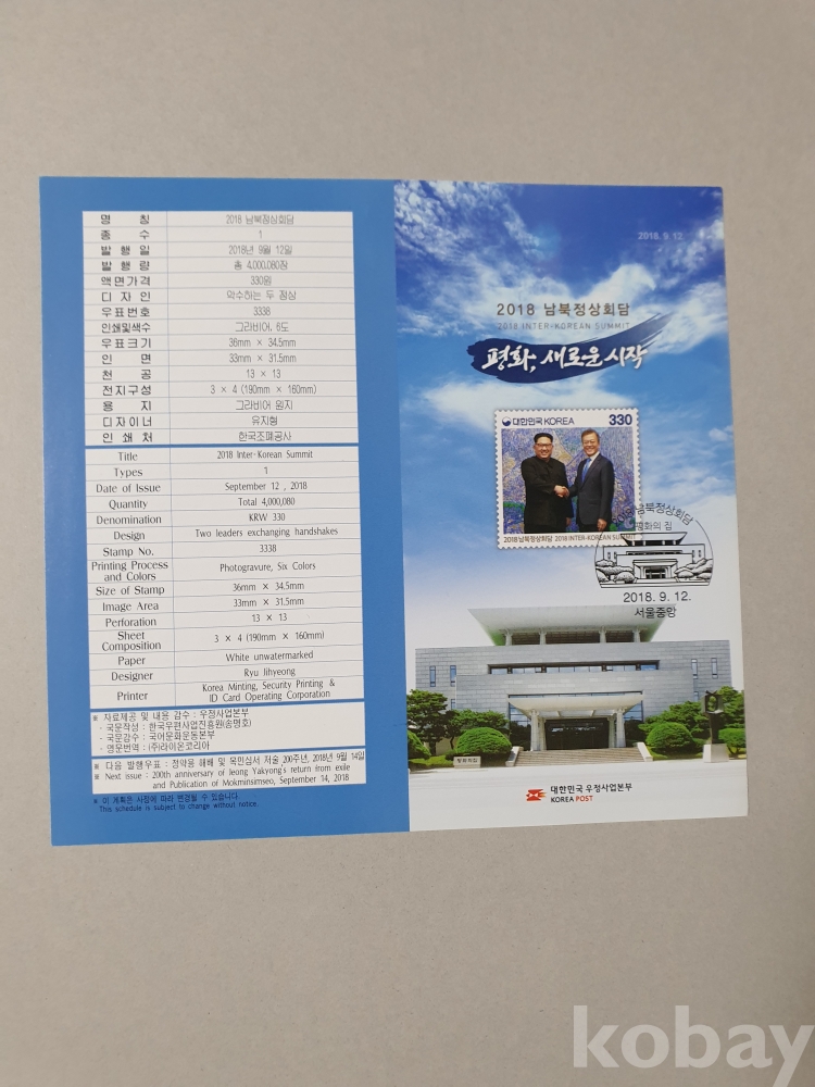 실물 사진입니다( 우표첩에서 분리)