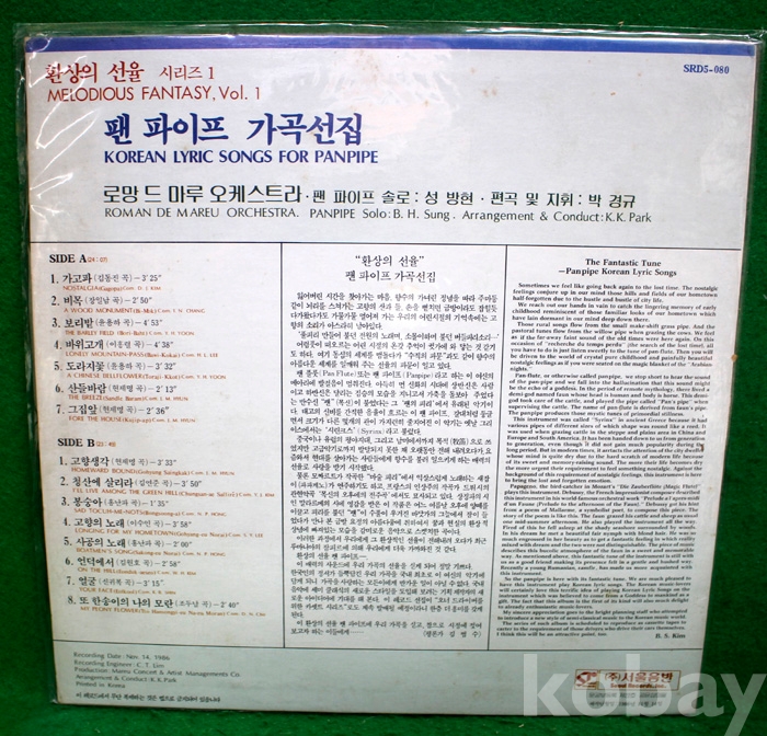 (LP) 팬 파이프 가곡선집 - 가고파 / 고향 생각 / 보리밭 ...