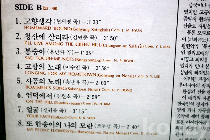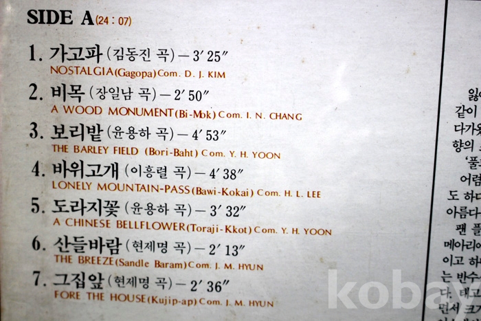 수록 곡 목은 사진을 참조하시기 바랍니다