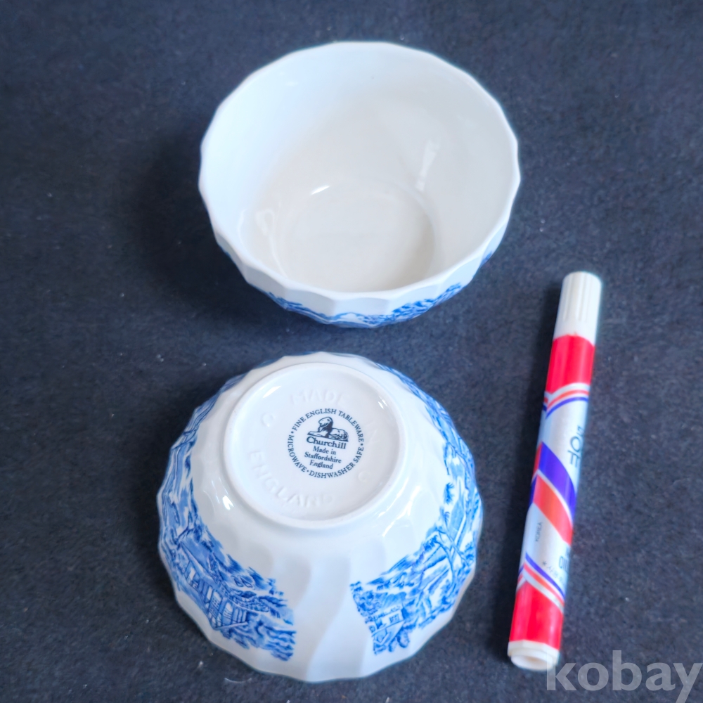 (((도자기식기))) 오래전 영국에서만든 전원풍경모습이 멋진 도자기 공기 2개 (Churchill)
