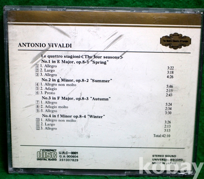 (일본제작 CD) World's classics of Karajan : Vivaldi - The Four Seasons...
