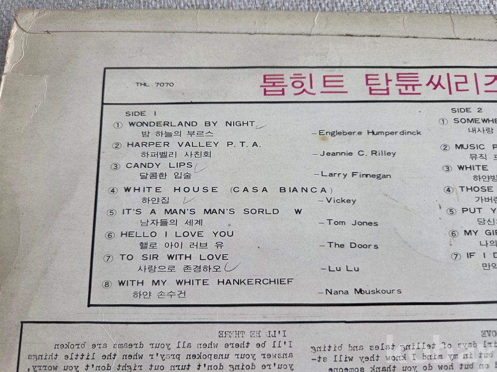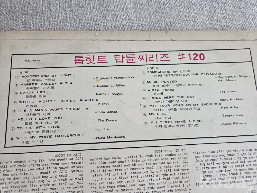 독특하게도 후면의 가사 인쇄가 완전히 거꾸로 인쇄된 것이 눈에 띕니다