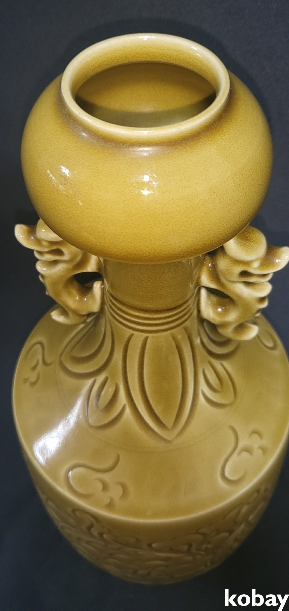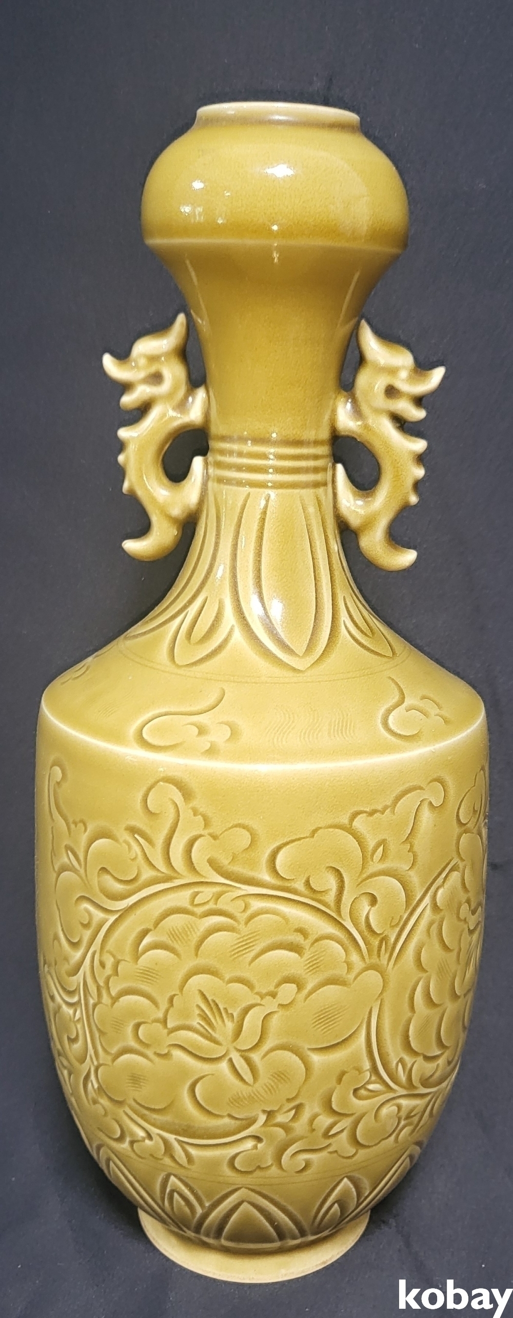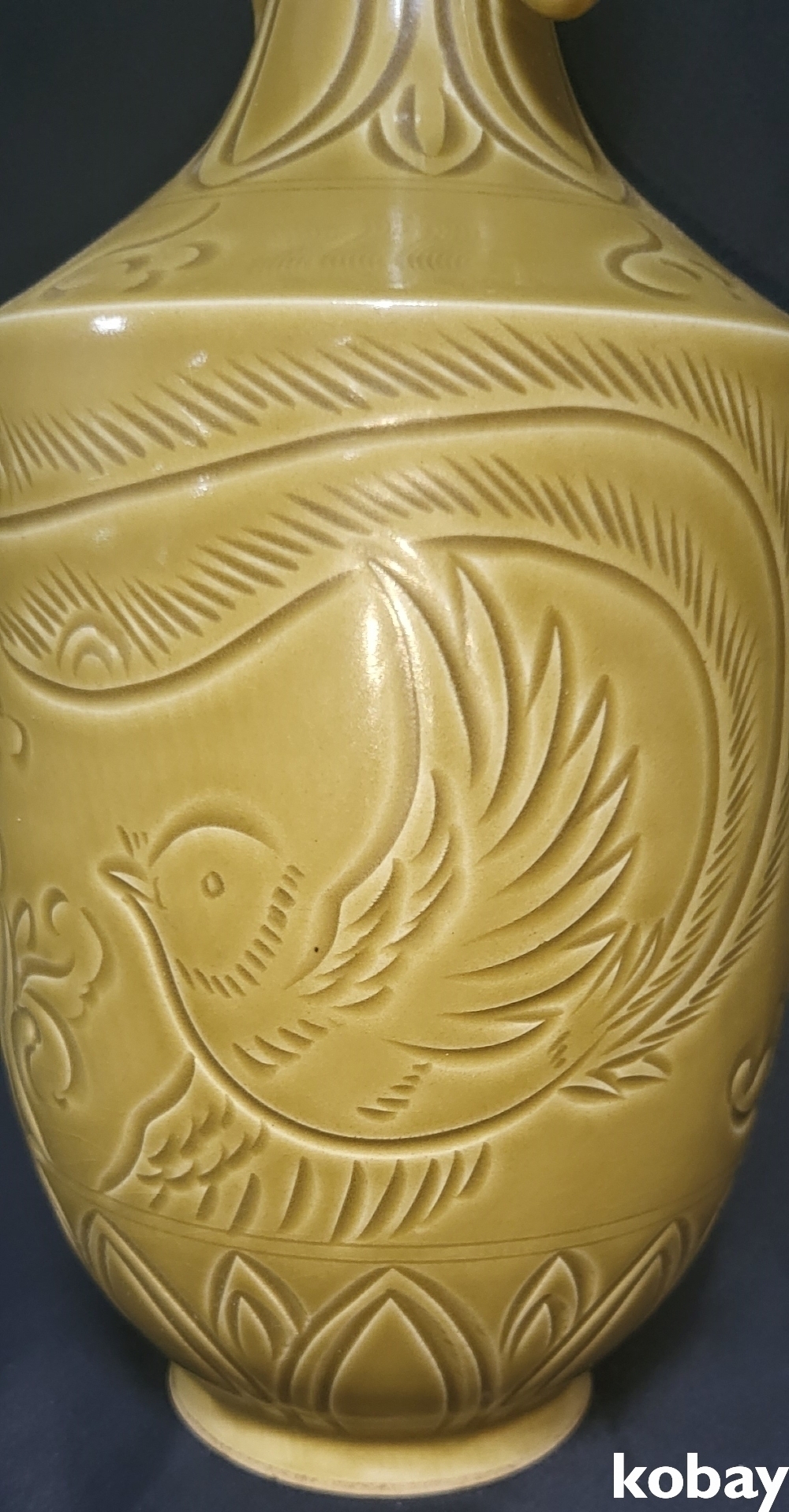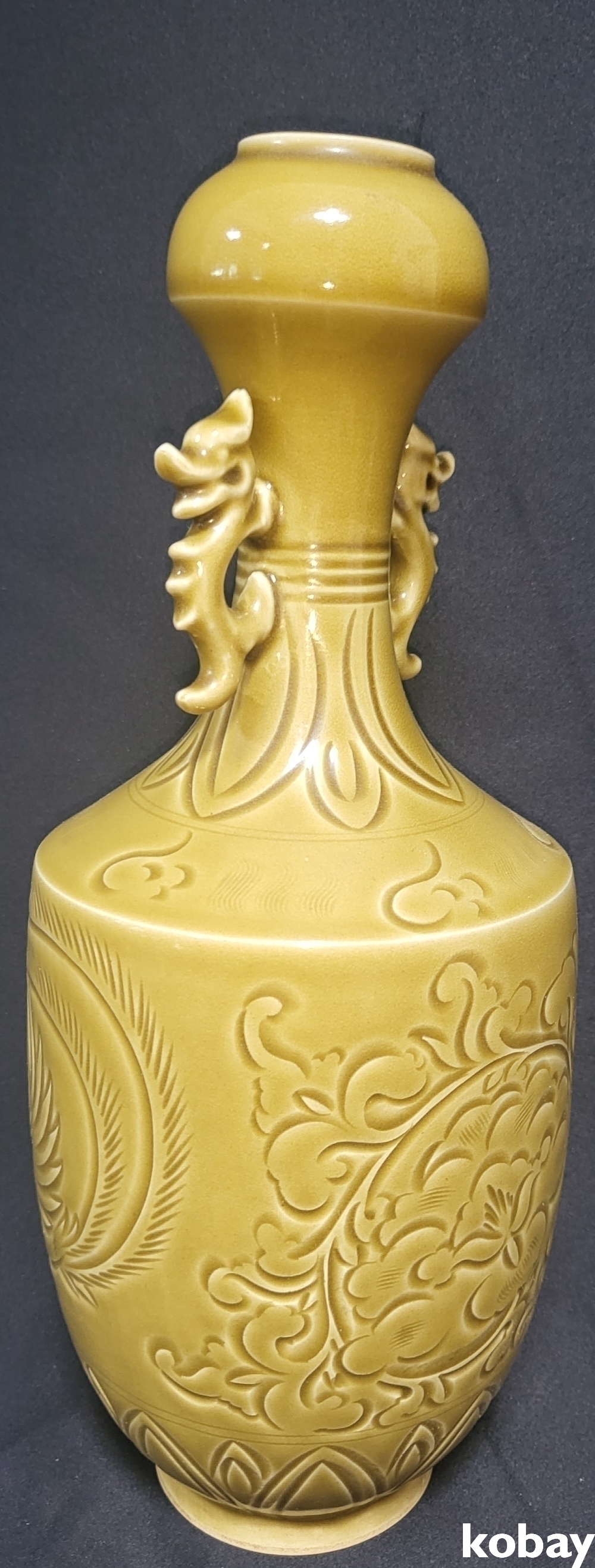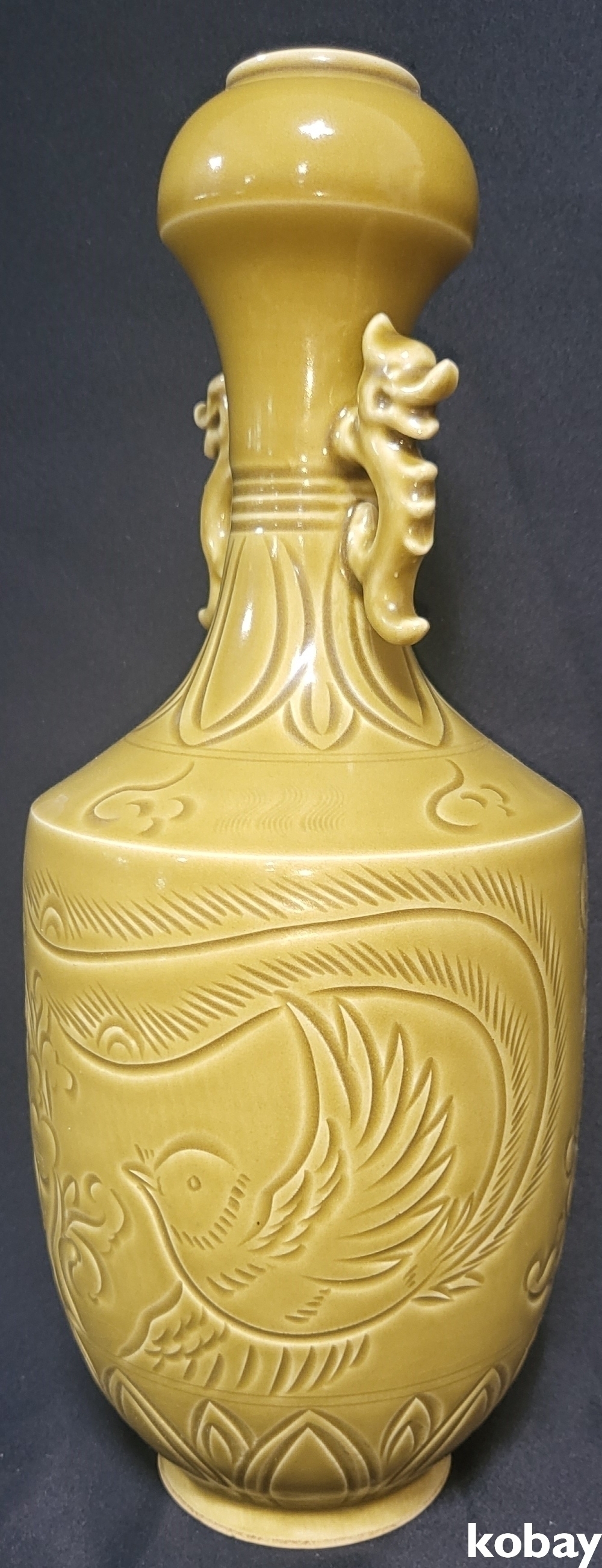 때깔좋은 황유 화조문양 양이병입니다,
