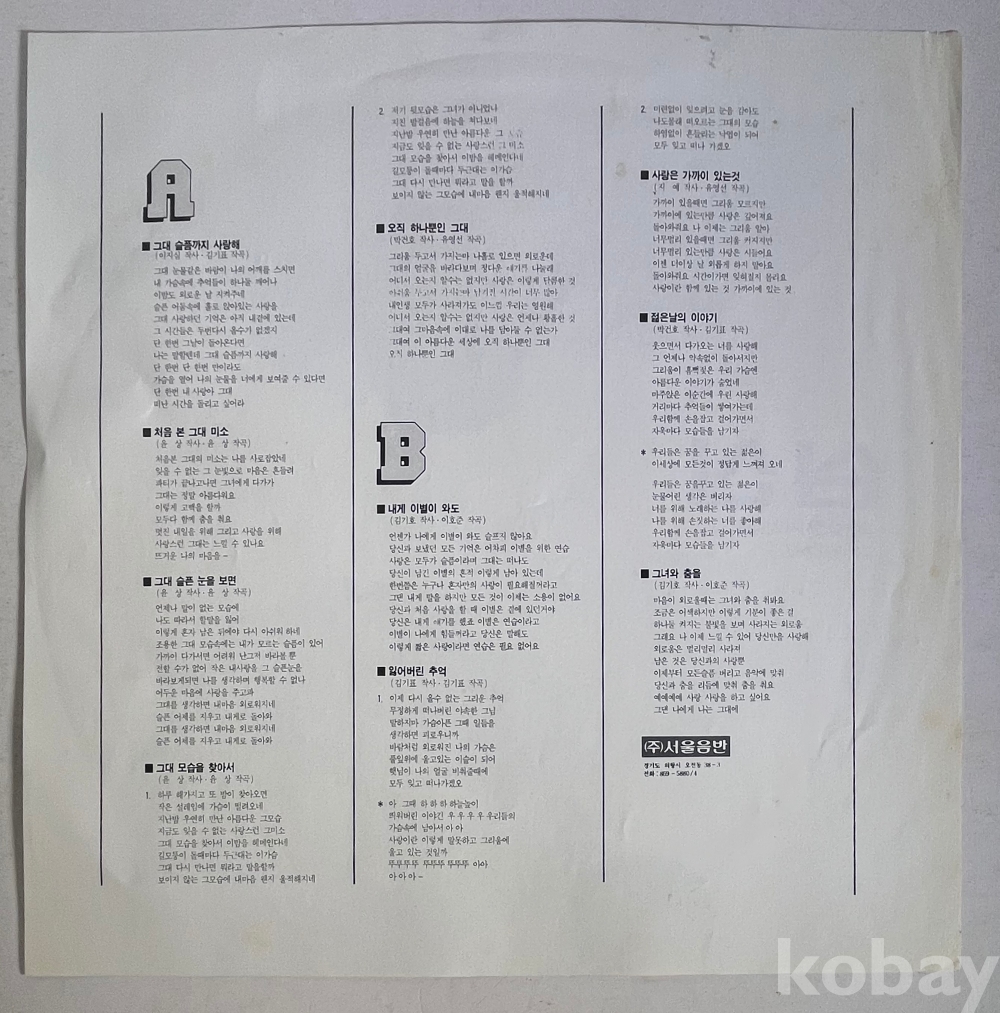 | 자켓상태 | EX : 약간의 마모, 모서리 찢김 존재 | 음반상태 | NM : 개봉했으나 미사용급, 스크래치 없음 | 발매정보 | 알수없음 | 가사지여부 | 유 |