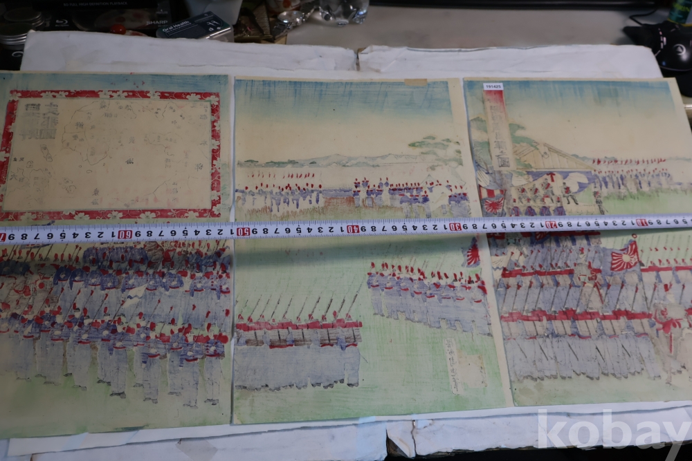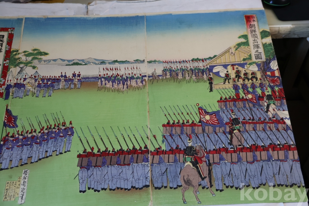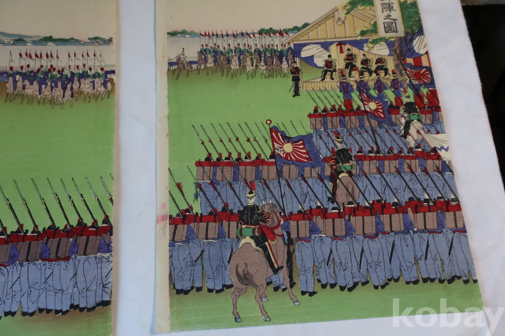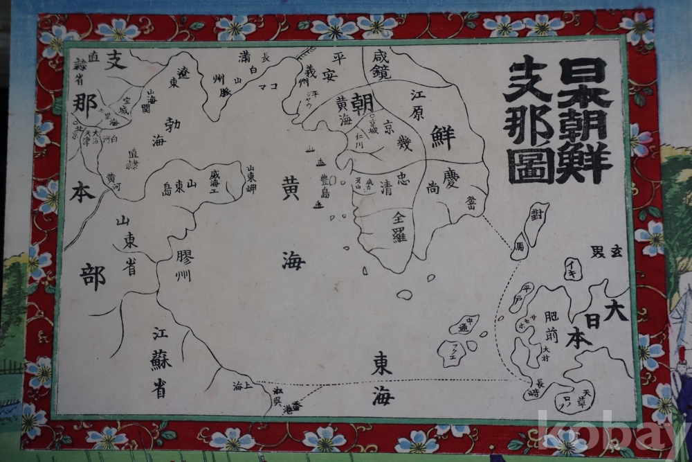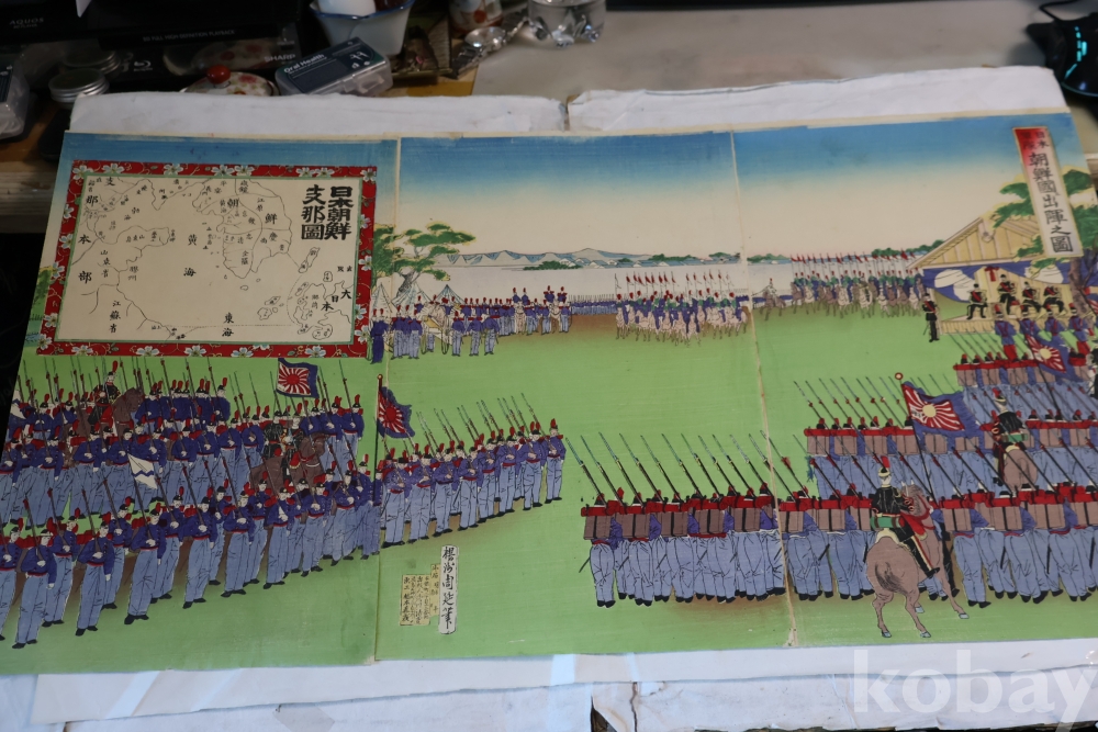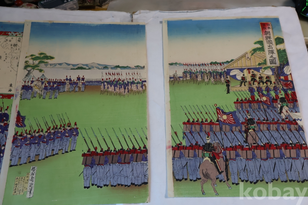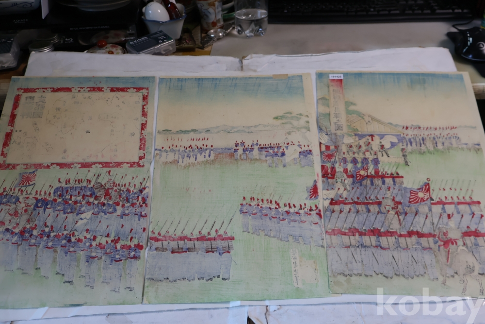 귀한 소제를 가진 19세기 목판화 3 세트 임니다 특히 3 나라의 지도가 보이는 유일무이한 명화 임니다 Artist: Chikanobu Yoshu (1838-1912)