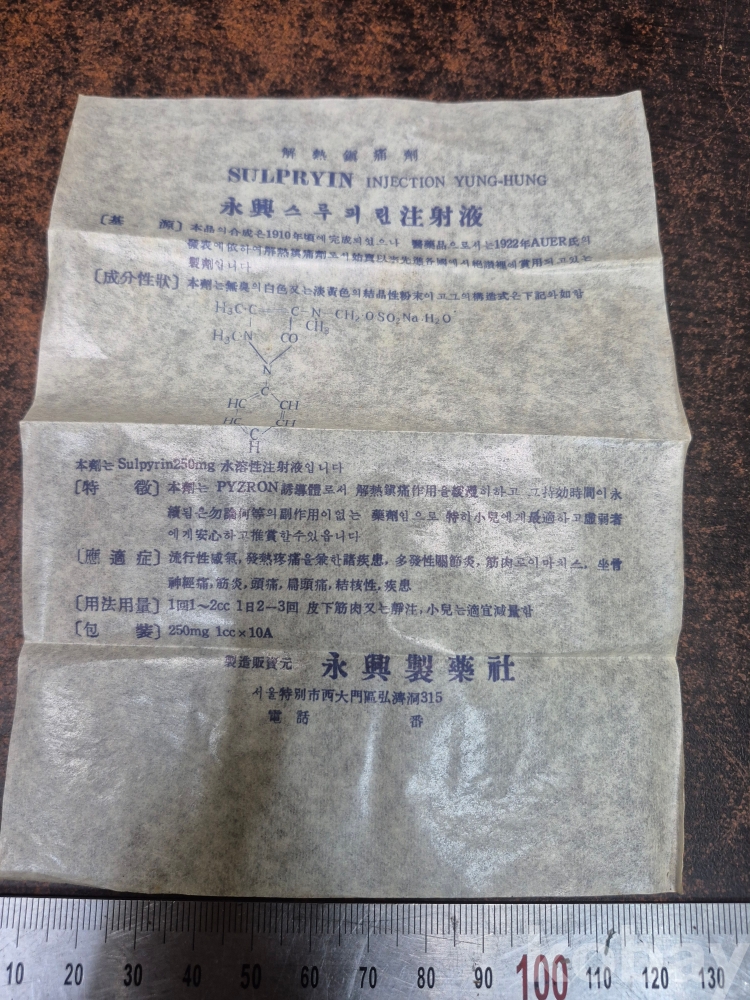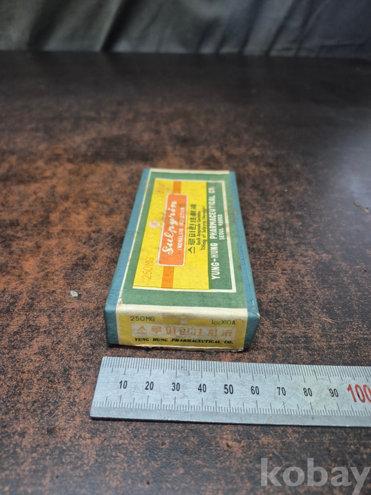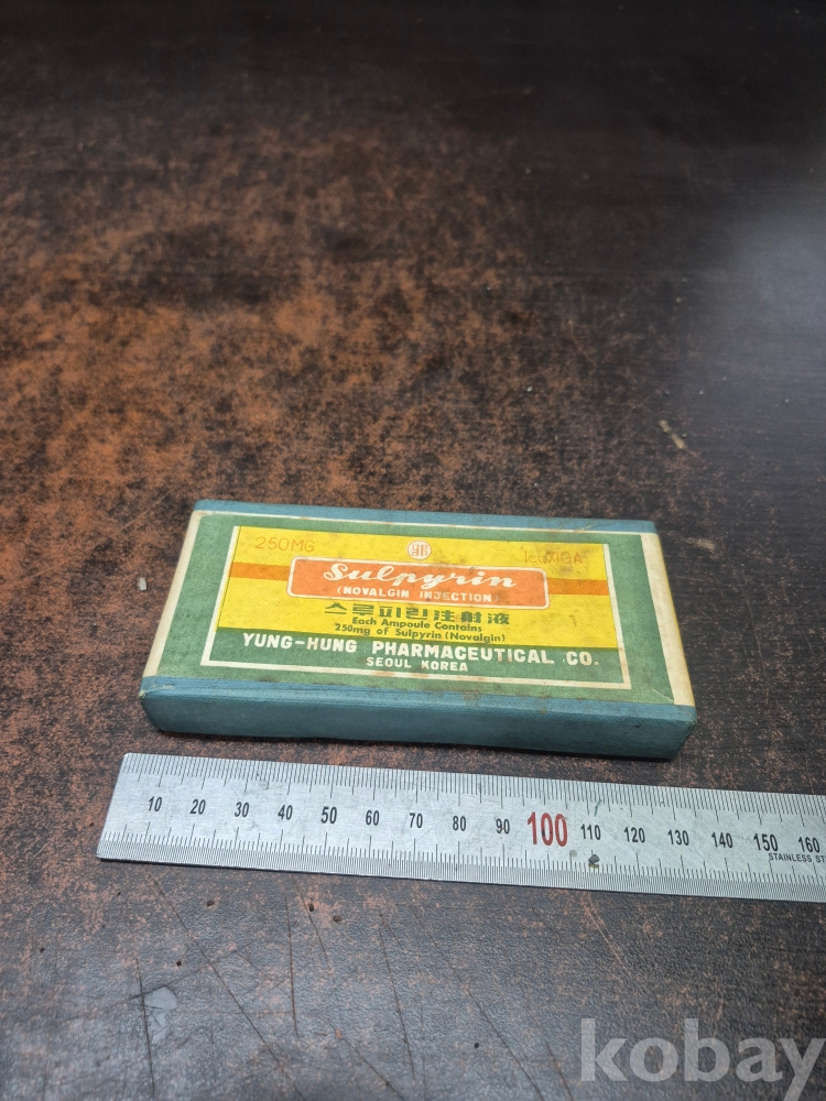 1965년 의학자료 영흥 제약사 스루피린 주사액 미사용품 소품용 자료용 13*6*2.5