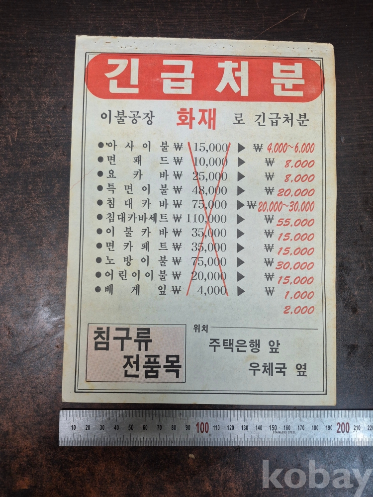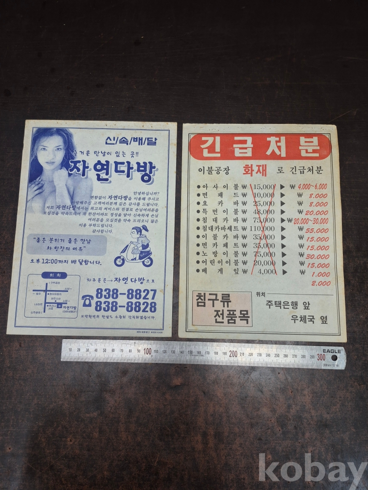 1980-90년대 충북 증평 청주 광고 전단지 자연다방 이불공장 2점 일괄 20*27