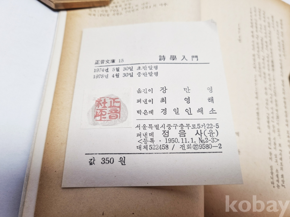 저자 및 역자: 영국의 시인 비평가인 C.D. 루이스(Cecil Day-Lewis)/ 장만영이 번역