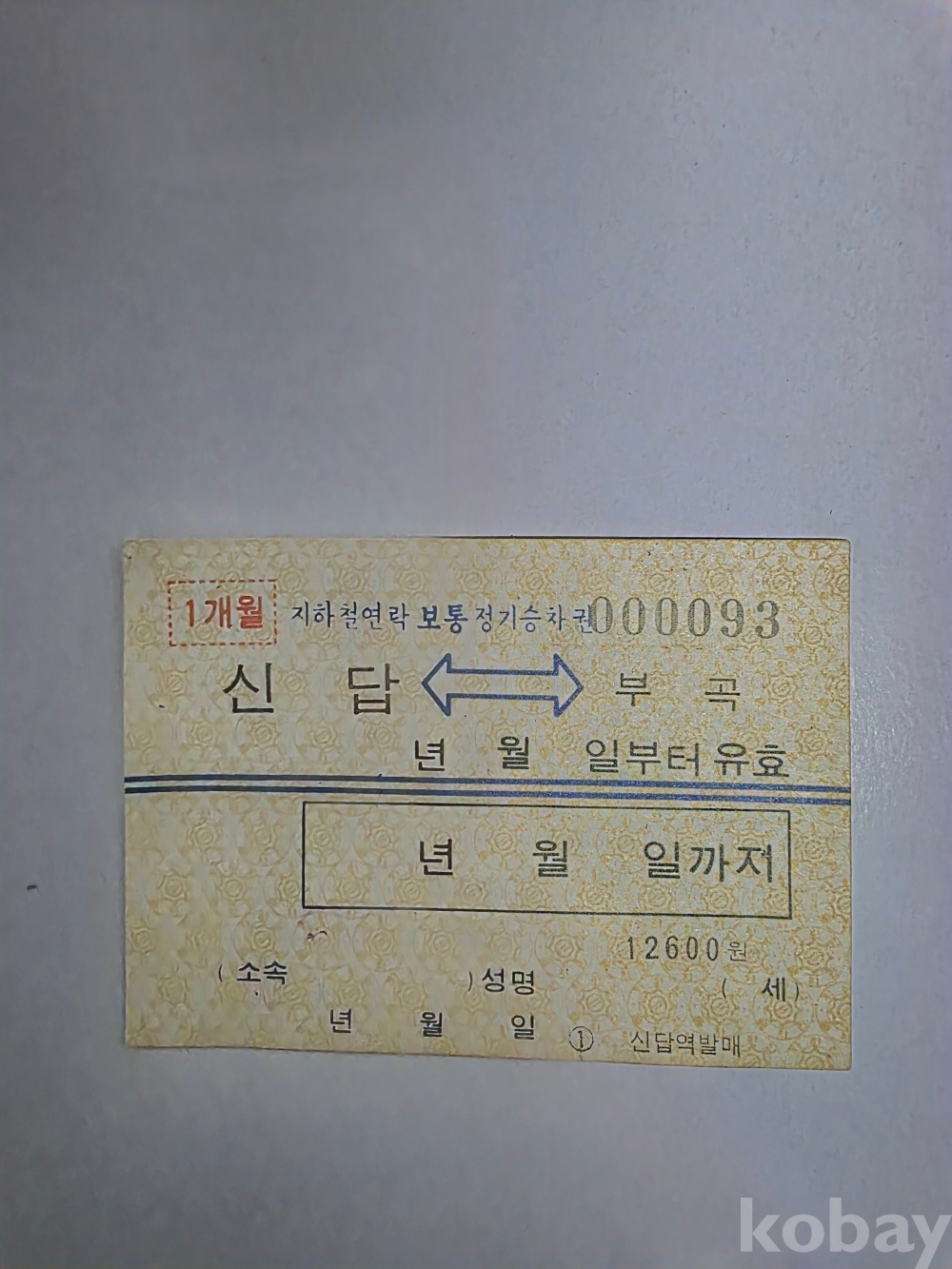 옛날 지하철 종이형 정기 승차권입니다