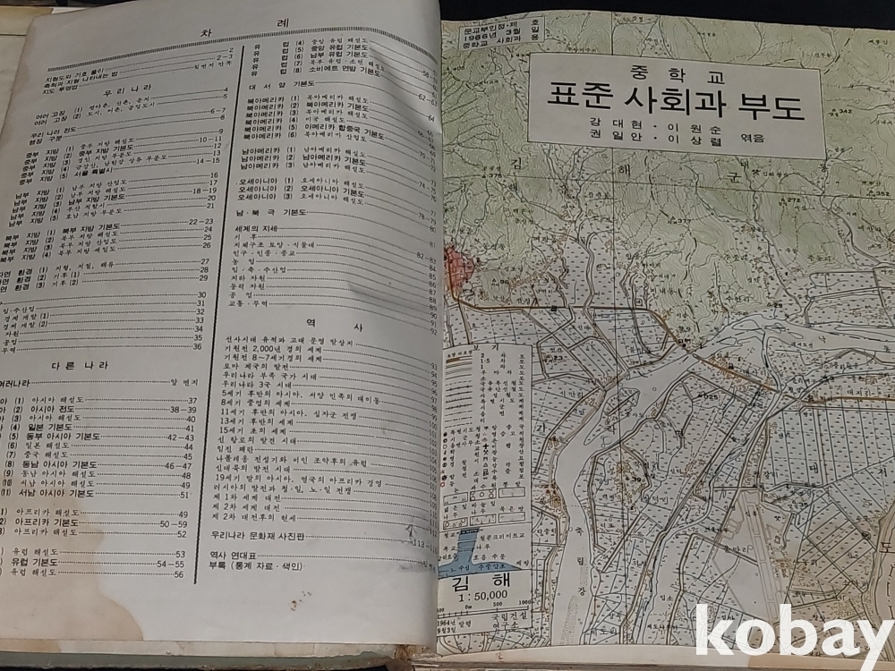 빈티지 세월 감이 느껴지는 1966년 중학교 표준 사회과 부도 교과서입니다.