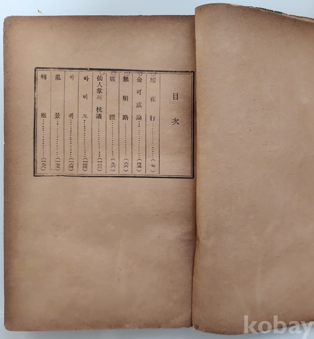 참고 사항 | ▶ 내용: 暗夜行 -- 金可成論 -- 無明路 -- 仙人掌의 抗議 -- 바비도 -- 박쥐 -- 亂景 -- 轉廻 |