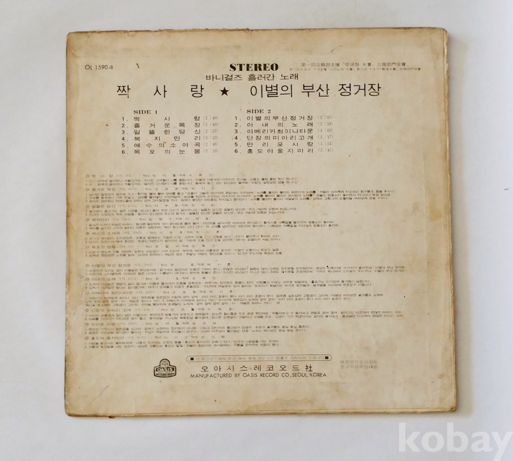 | 자켓상태 | EX : 약간의 마모, 모서리 찢김 존재 | 음반상태 | EX : 재생에 영향 없는 가벼운 기스 존재 | 발매정보 | 알수없음 | 가사지여부 | 무 |